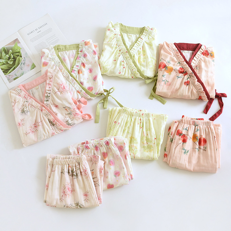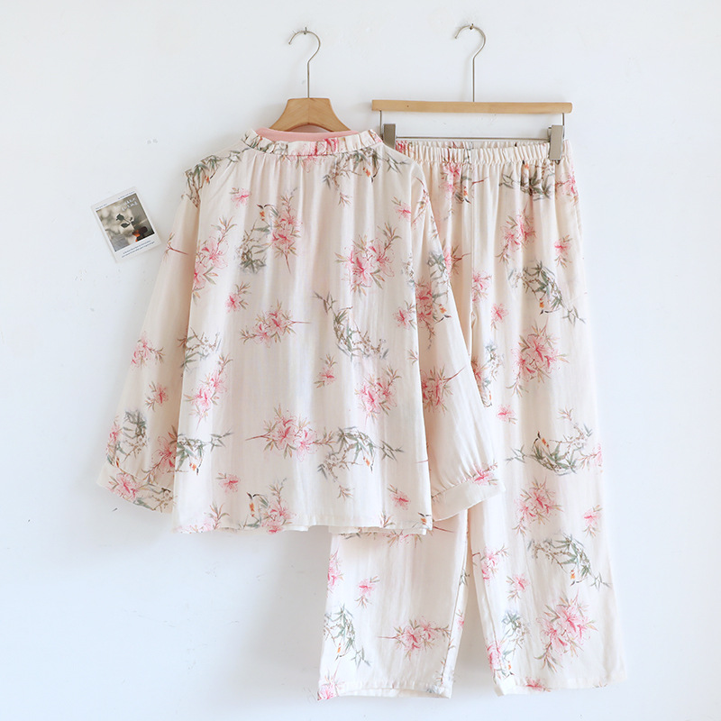 잠옷 여성의 봄과 여름 달콤한 인터넷 바지 스타일 홈 옷 신선한 슬란 캐주얼 파자마 긴 소매 바지 세트 홈 옷스토어 가기