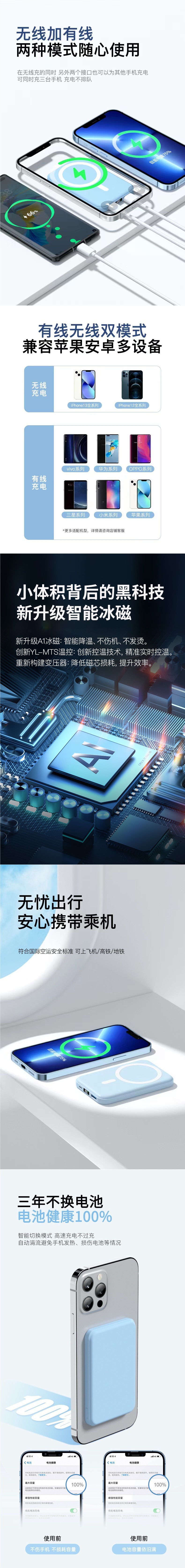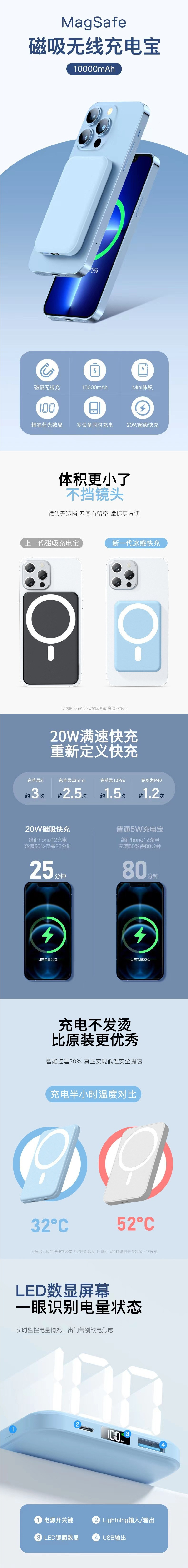 빠른 충전 Magsafe 자기 무선 충전기 충전 보물 용량 10000 mA 모바일 전원 도매스토어 가기