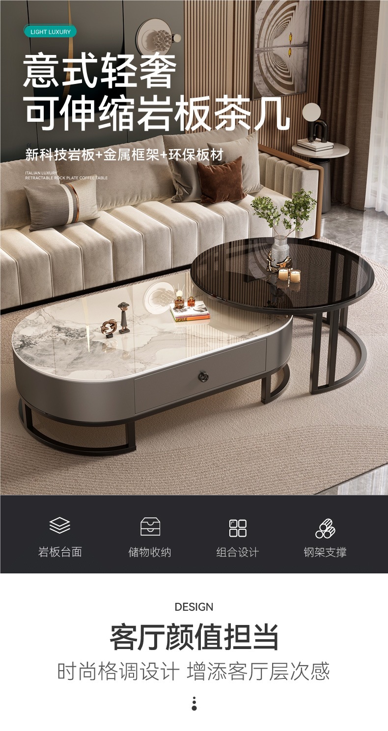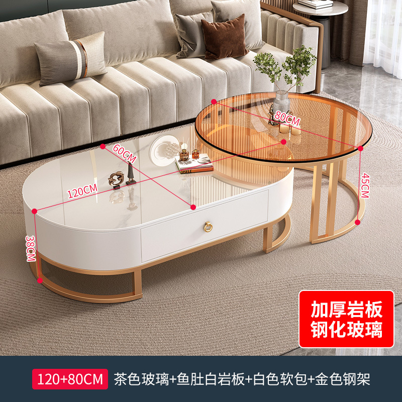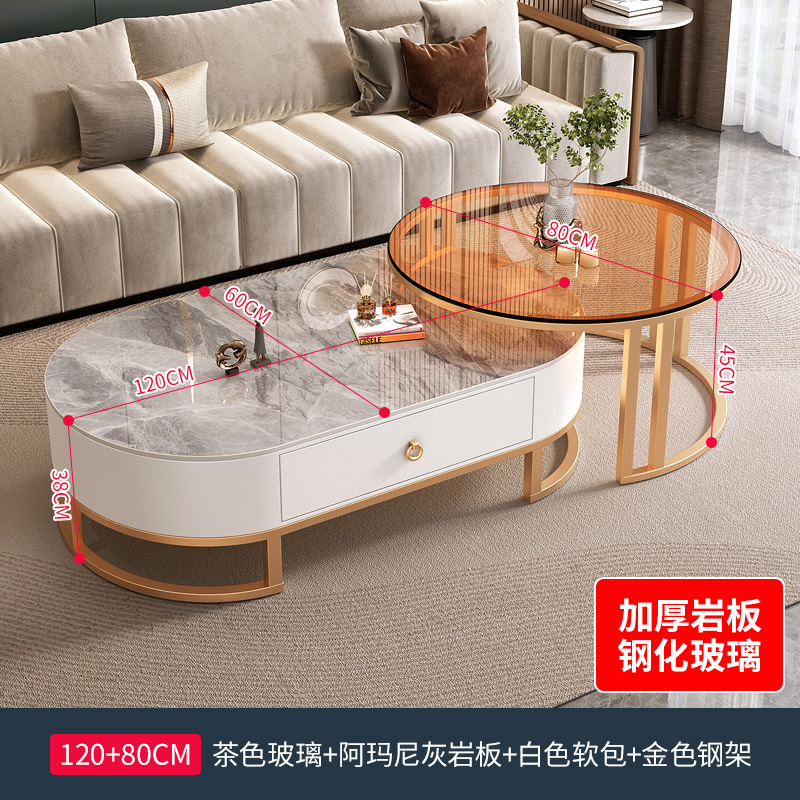 커피 테이블 거실 홈 2024 새로운 스타일 작은 아파트 라운드 록 플레이트 라이트 럭셔리 인터넷 인기있는 작은 커피 테이블 커피 테이블 테이블 테이블스토어 가기