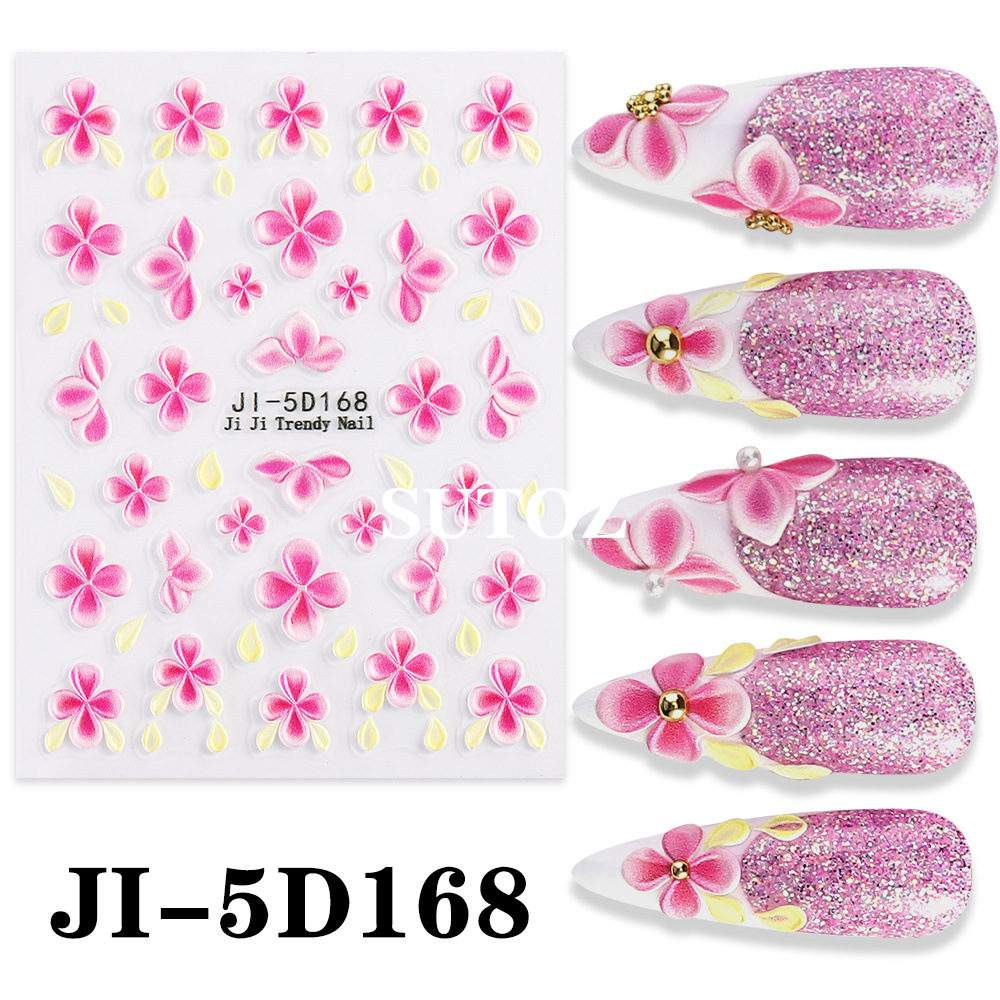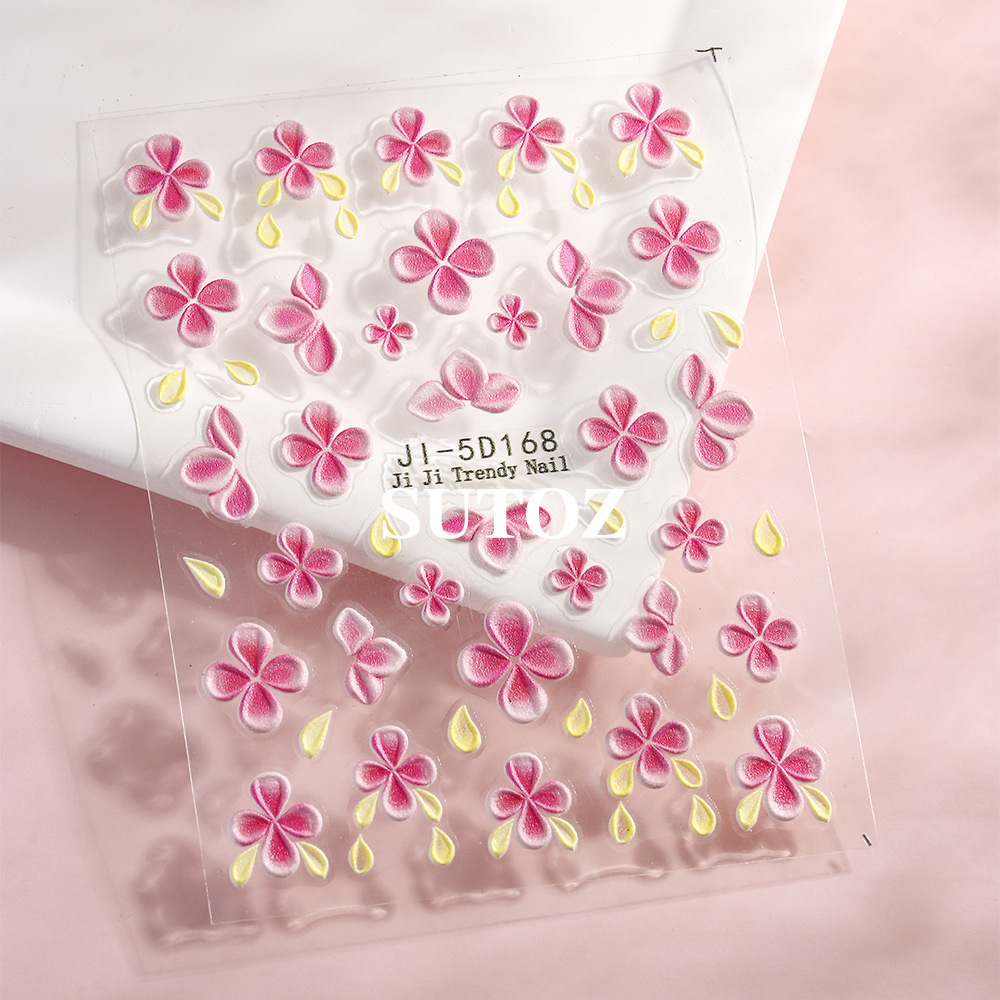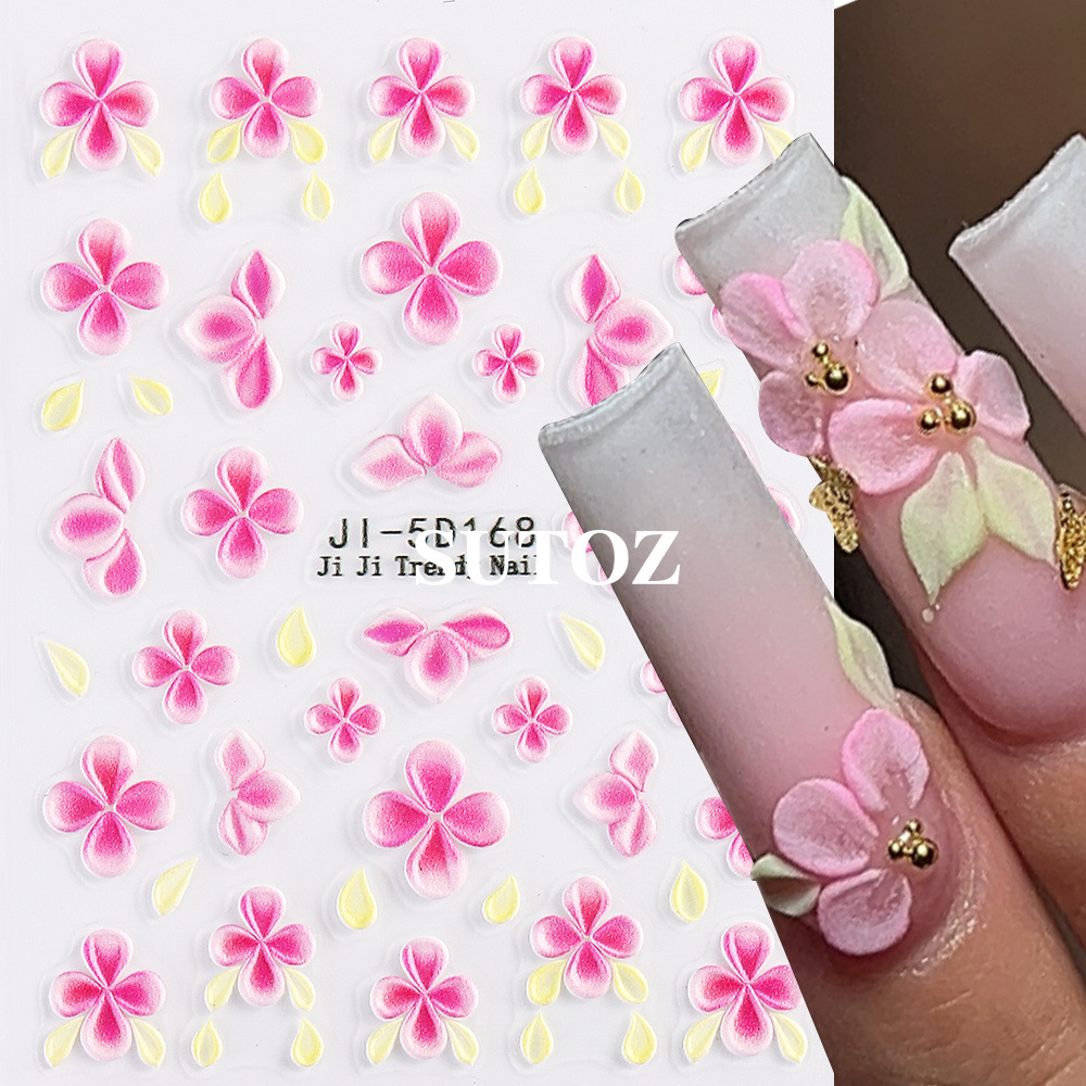 국경 간 새로운 5D 네일 아트 스티커 봄 날 스테레오 구호 사쿠라 꽃 얼음 꽃 소녀 네일 다시 접착 스티커