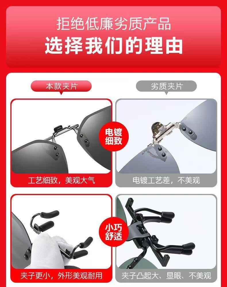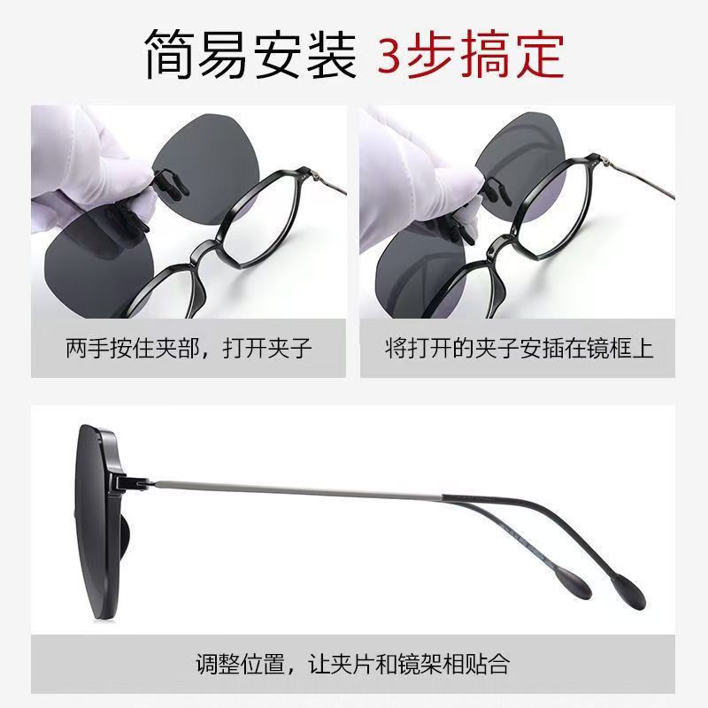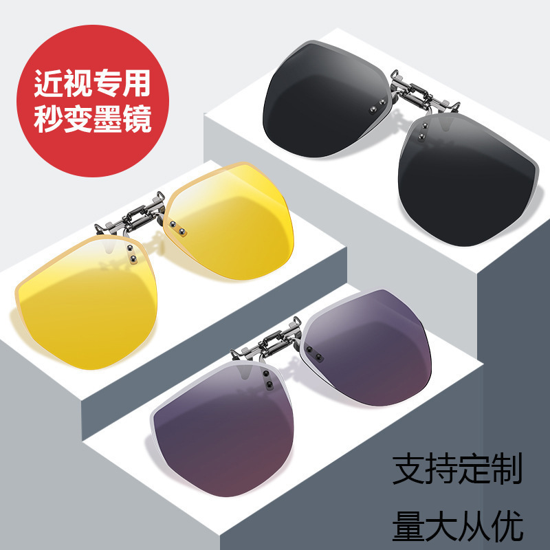 다각형 편광 선글라스 클립온 남녀공용 플립업 초경량 운전 변색 야간 시력 근시 선글라스 클립온 여성용스토어 가기