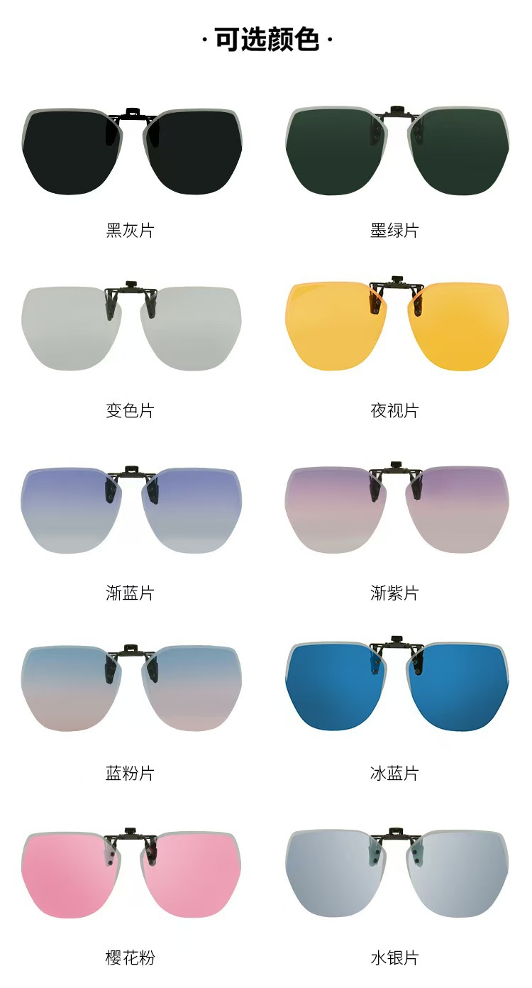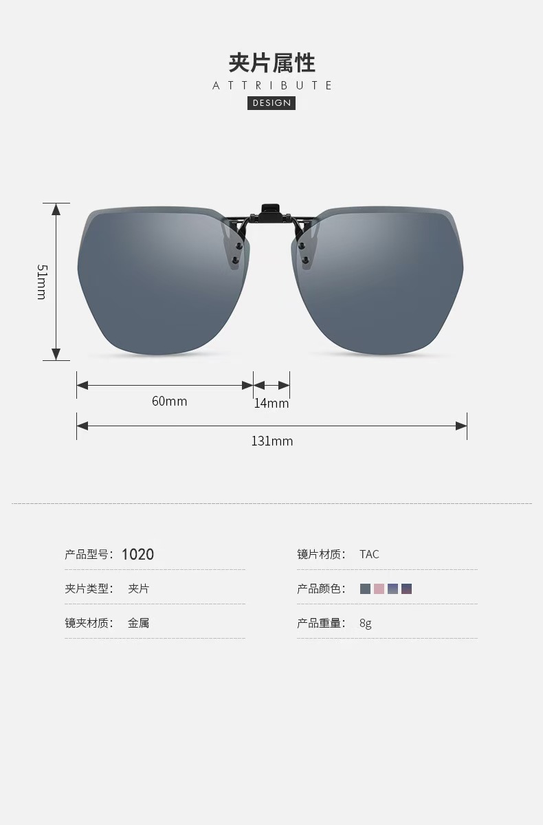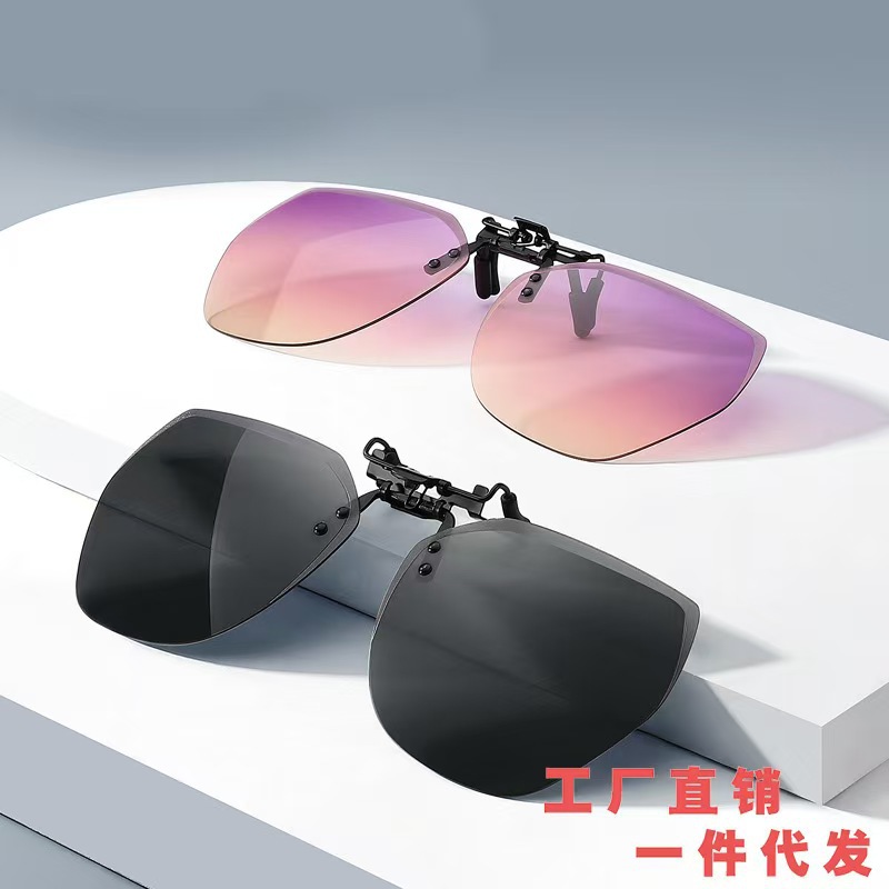 다각형 편광 선글라스 클립온 남녀공용 플립업 초경량 운전 변색 야간 시력 근시 선글라스 클립온 여성용