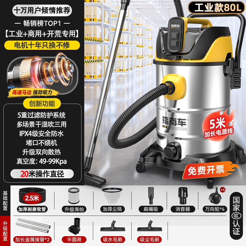 • [고효율 공냉식 듀얼 모터 - 4000W 두꺼운 스테인레스 스틸 배럴 + 99880PA 강력한 흡입] 80L 흡수 가능 + 두꺼운 배럴 + 흡수 가능 + 산업용 +