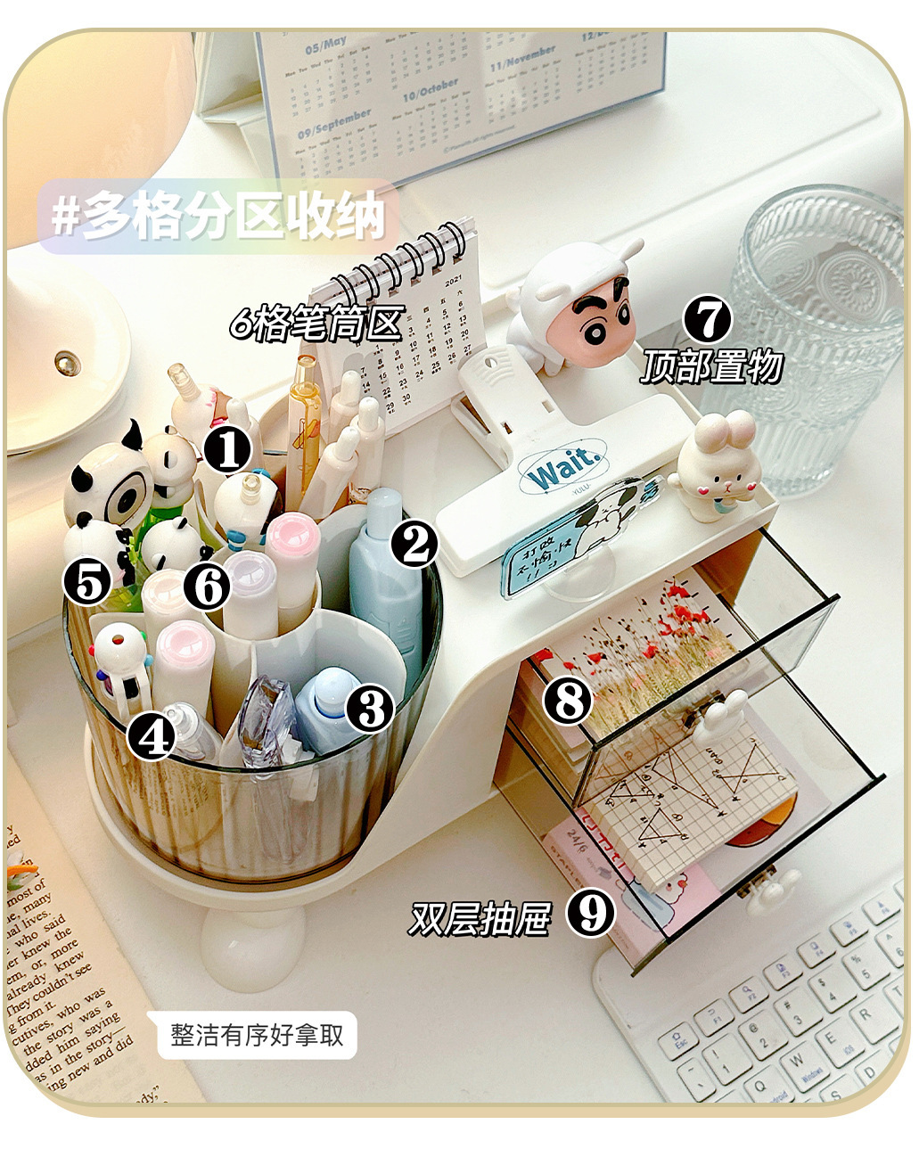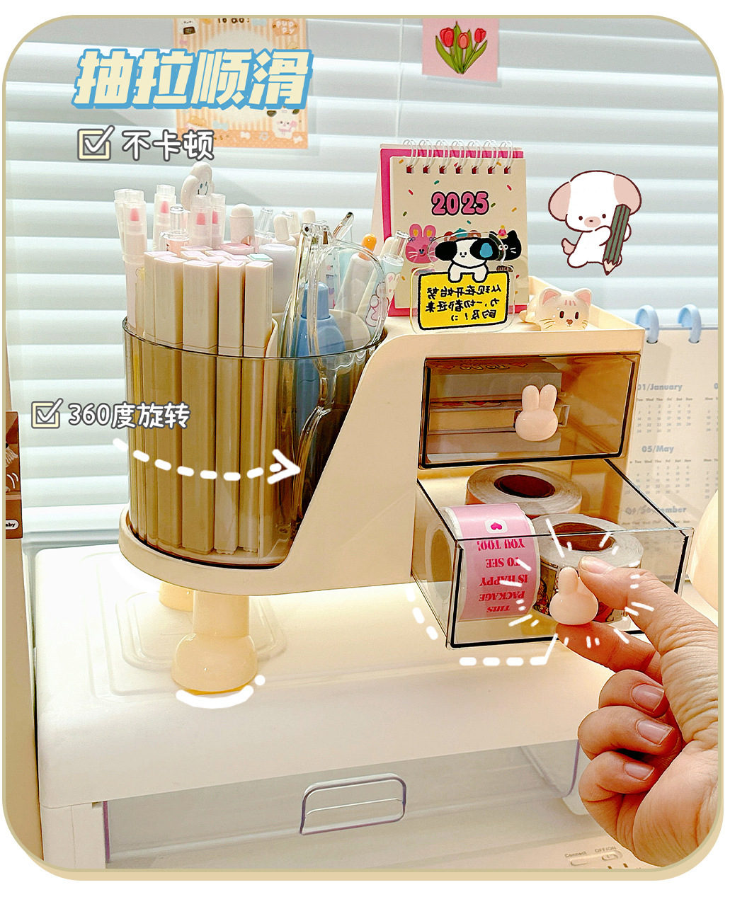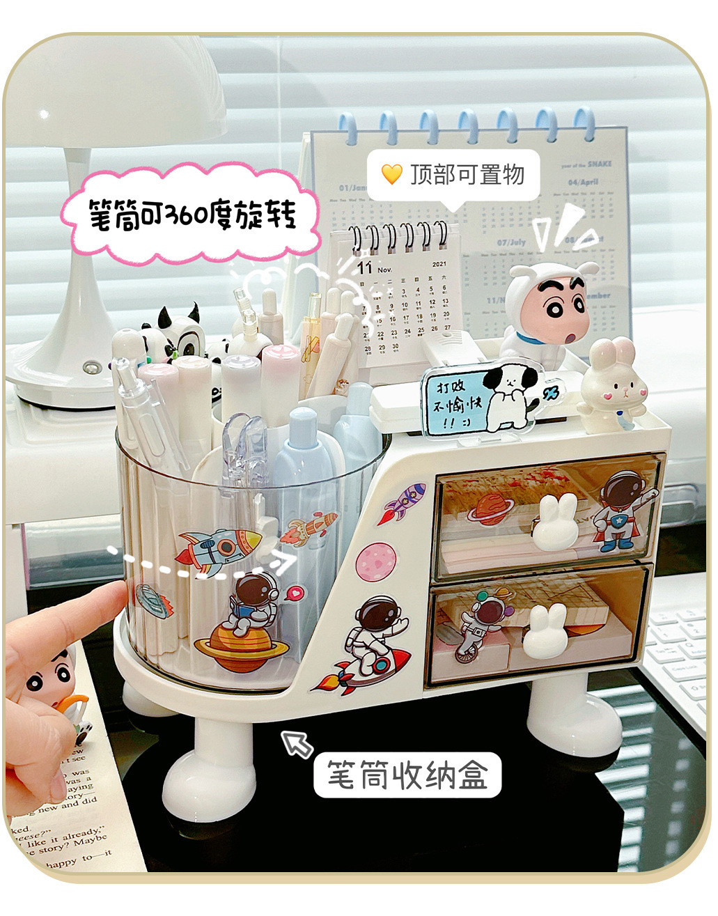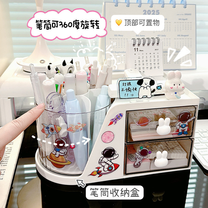 데스크탑 학생용 펜 홀더 책상 문구류 정리함 사무실 책상 회전형 수납함스토어 가기