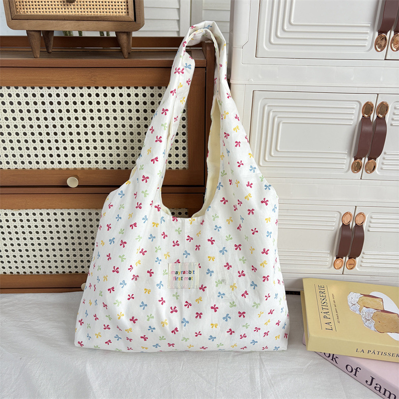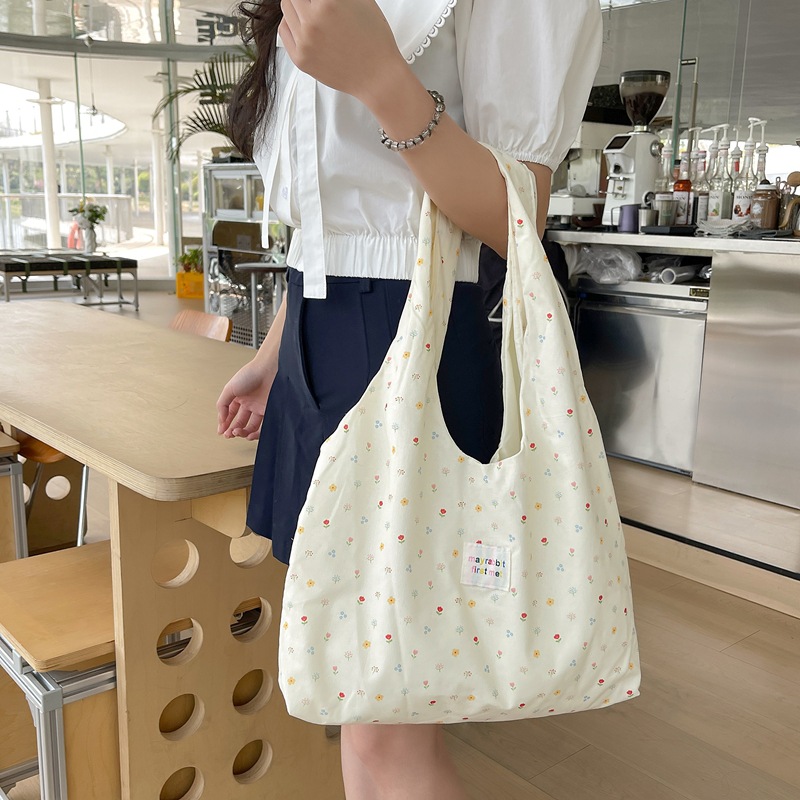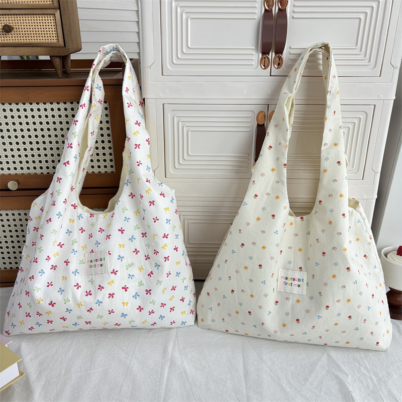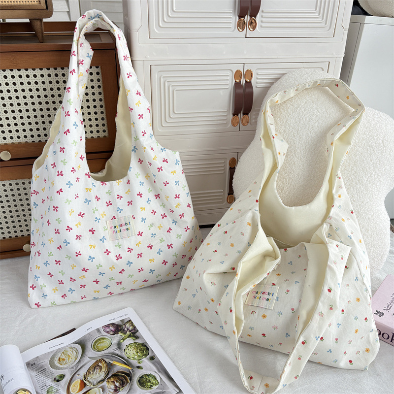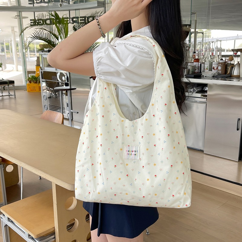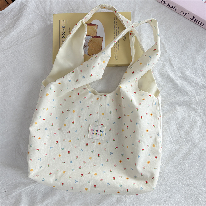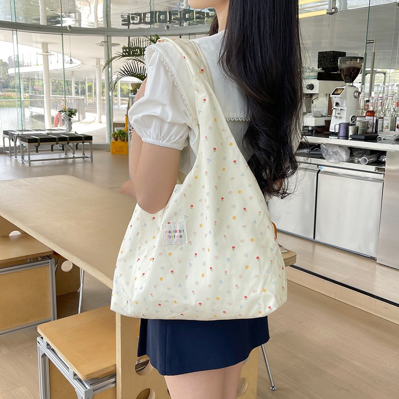 한국 스타일 달콤한 작은 꽃 조끼 가방 신선한 올매치 틈새 휴대용 캔버스 가방 유행 여성용 대용량 언더암 가방스토어 가기