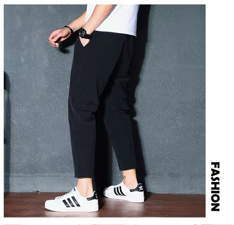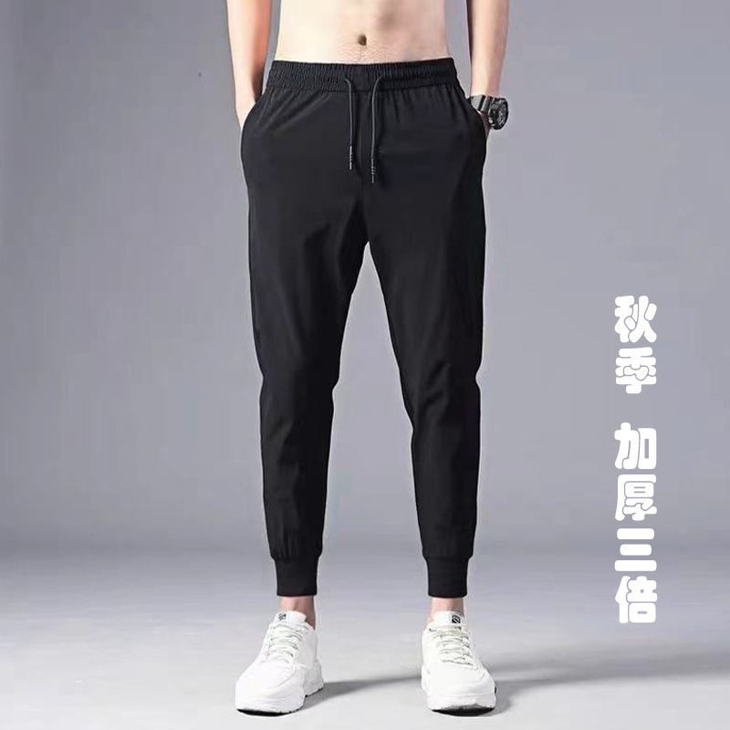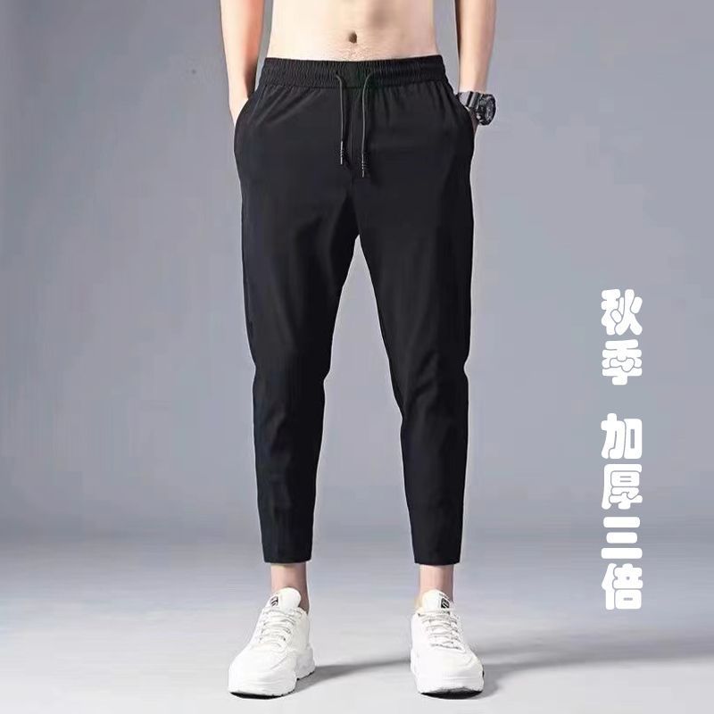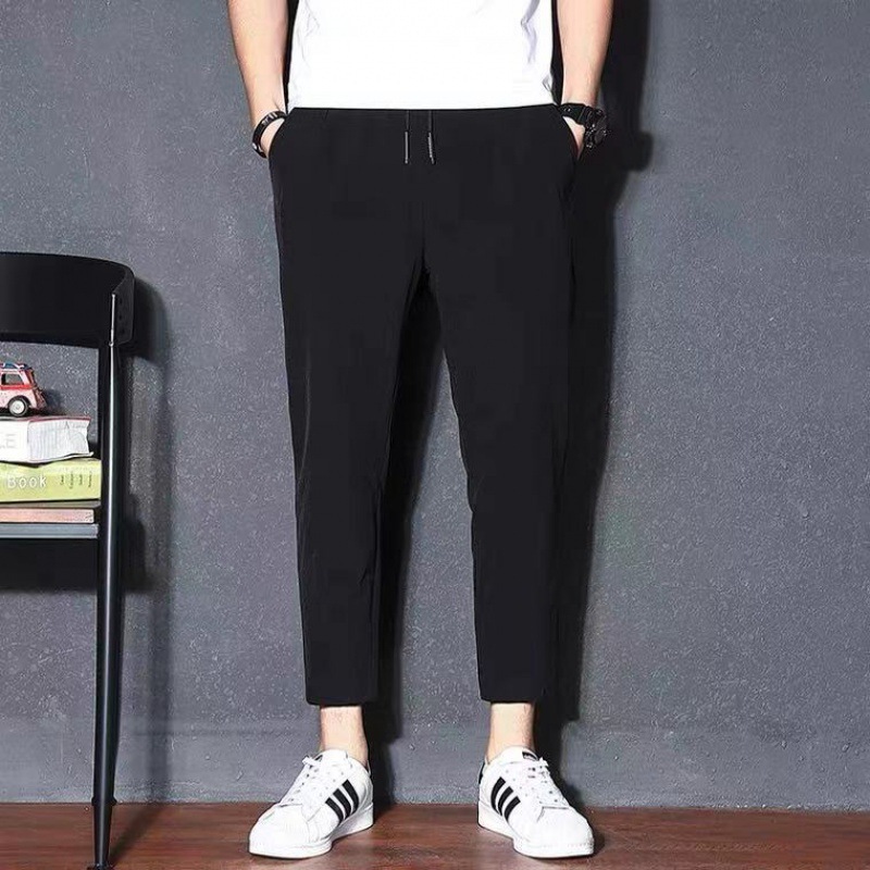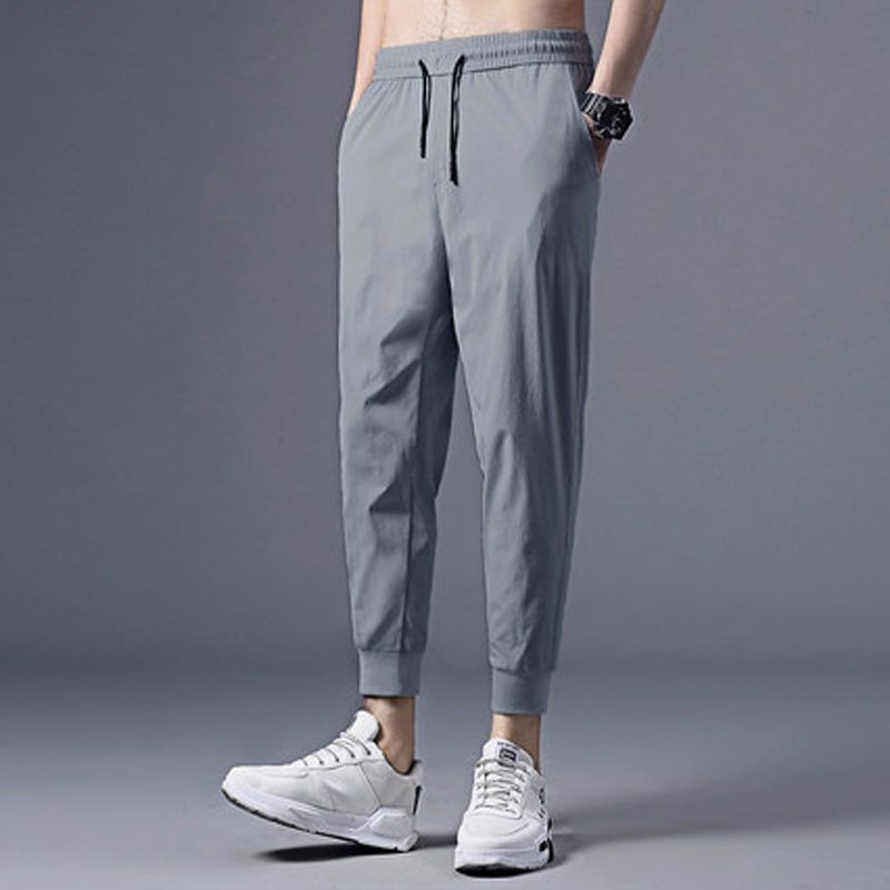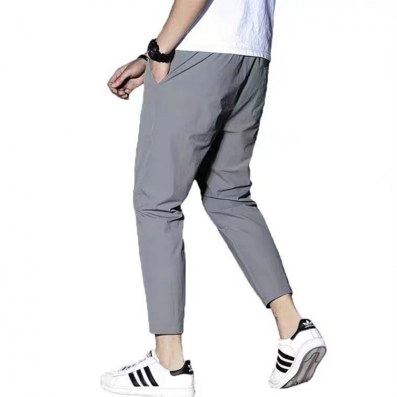 바지 남자 여름 얇은 아이스 실크 발목 길이 바지 작은 느슨한 슬리밍 스포츠 바지 봄과 가을 남자 캐주얼 바지스토어 가기
