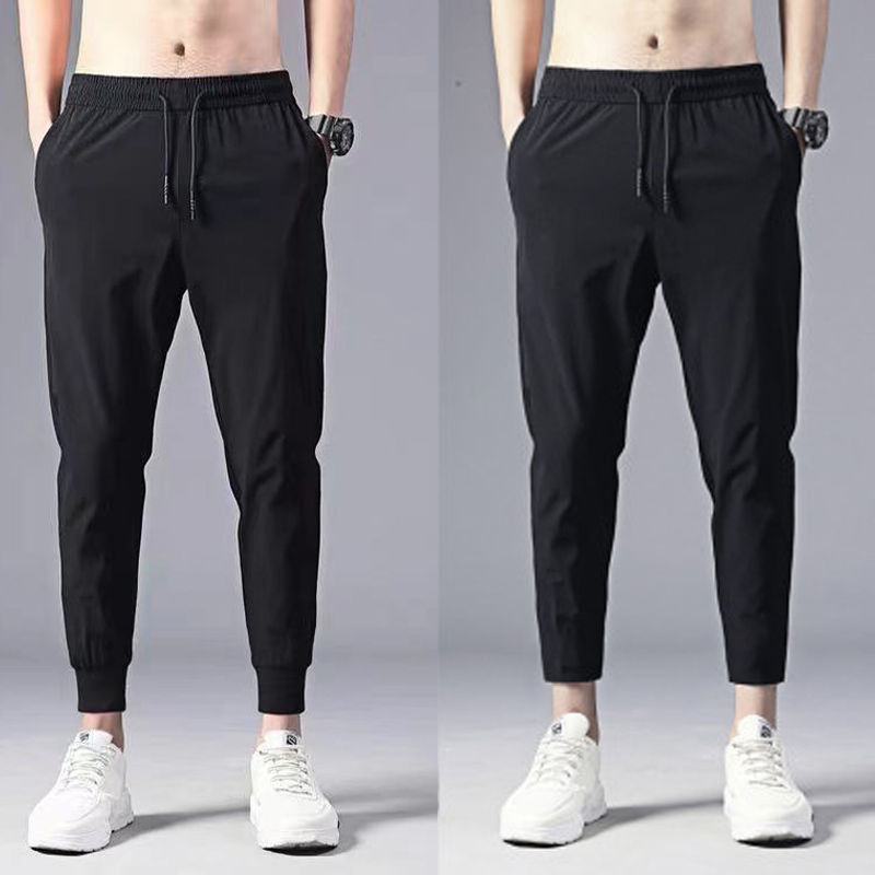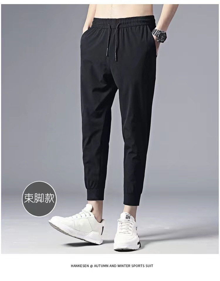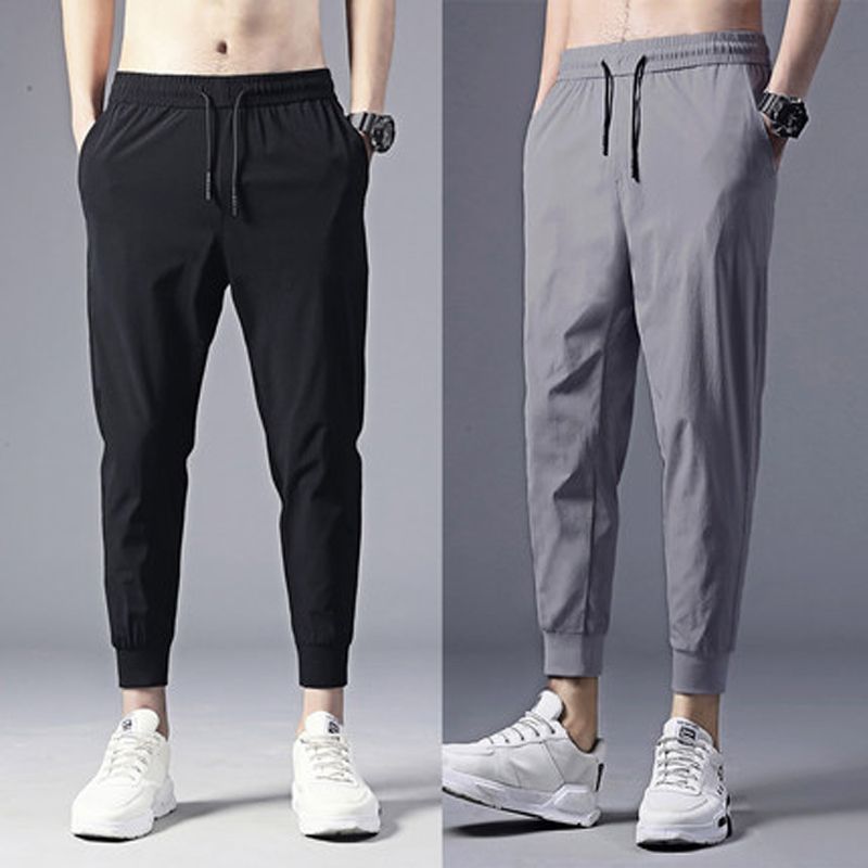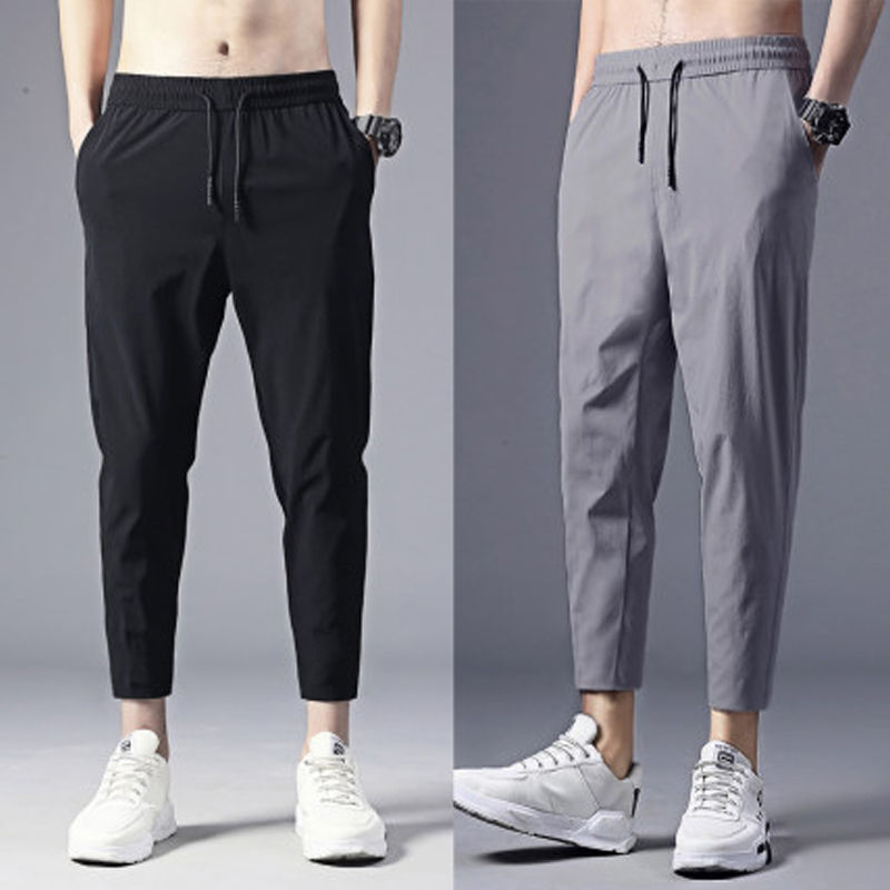 바지 남자 여름 얇은 아이스 실크 발목 길이 바지 작은 느슨한 슬리밍 스포츠 바지 봄과 가을 남자 캐주얼 바지