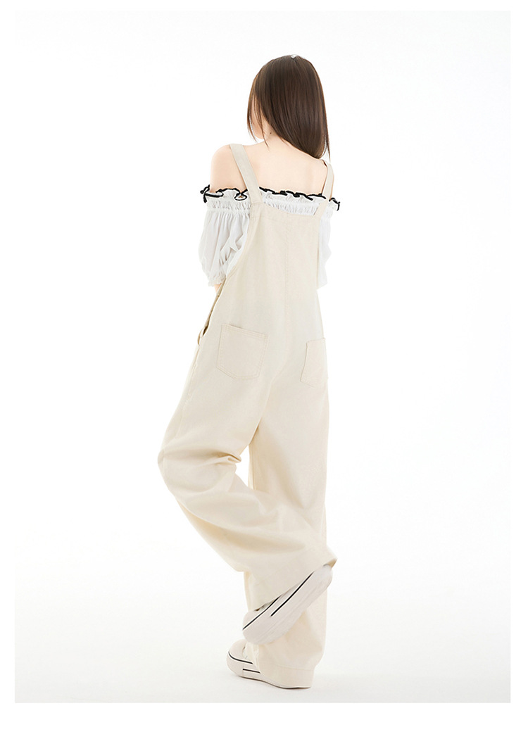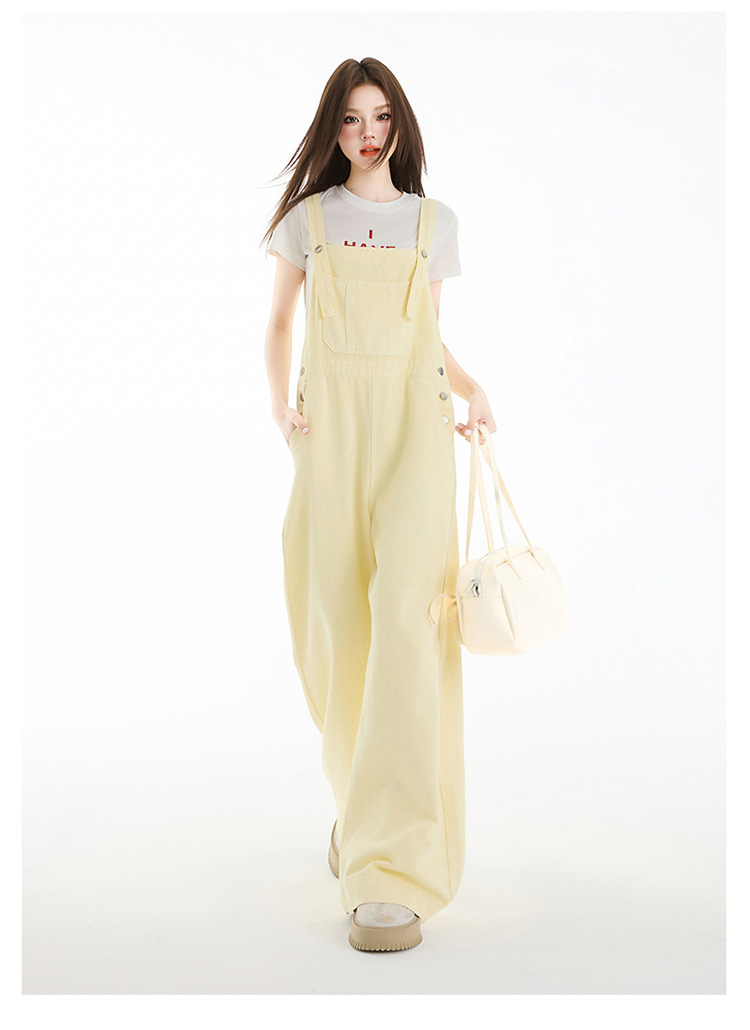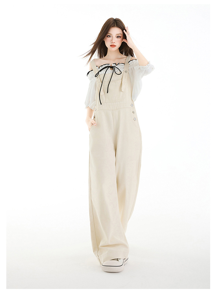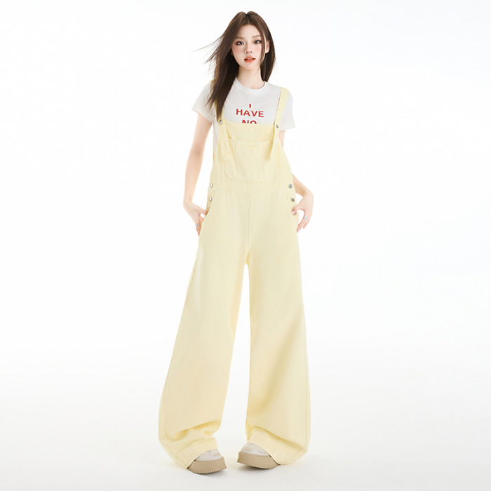 여성용 데님 멜빵바지 여름 2025 신상 루즈핏 레트로 하이웨이스트 스트레이트핏 소녀용 와이드 팬츠 레트로 스타일