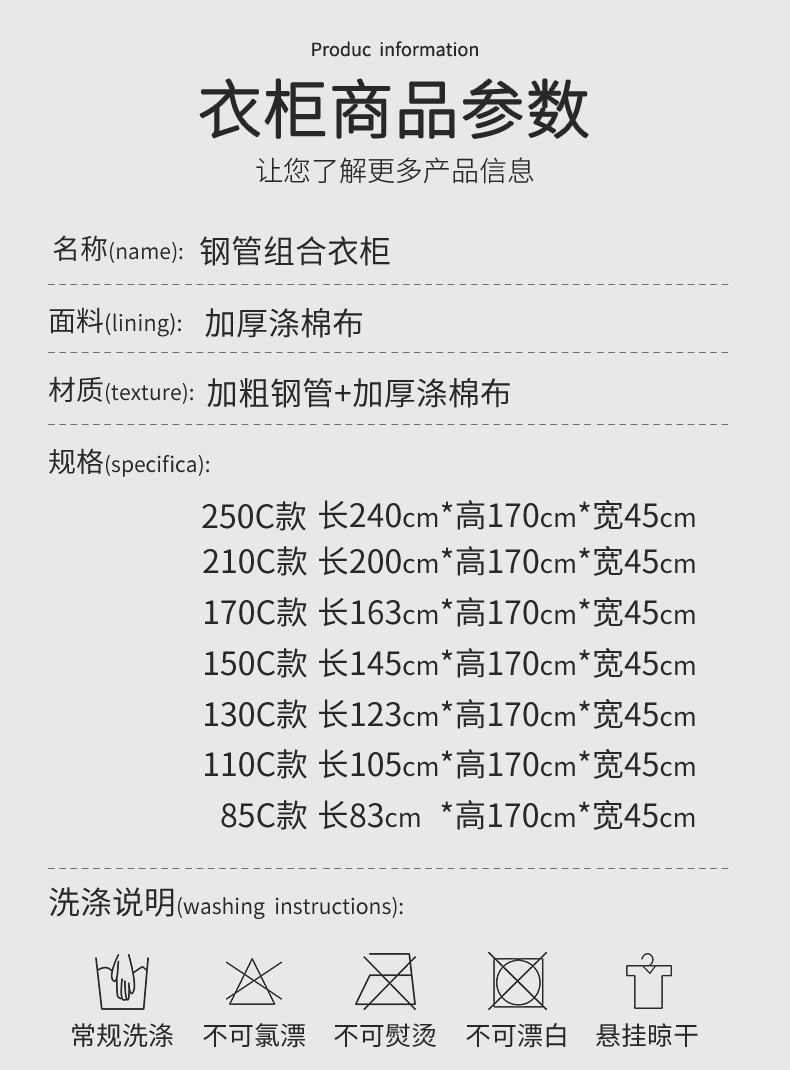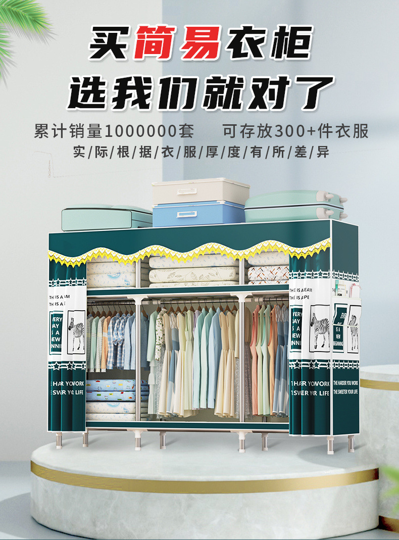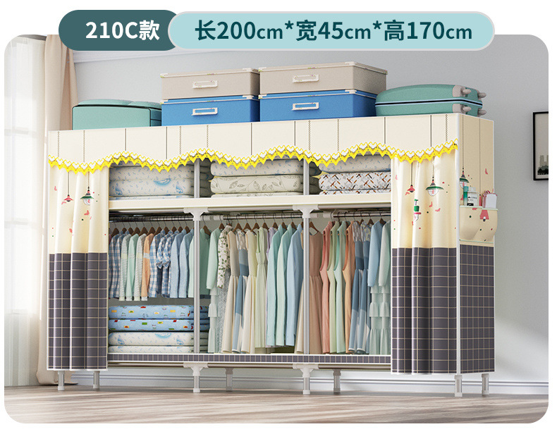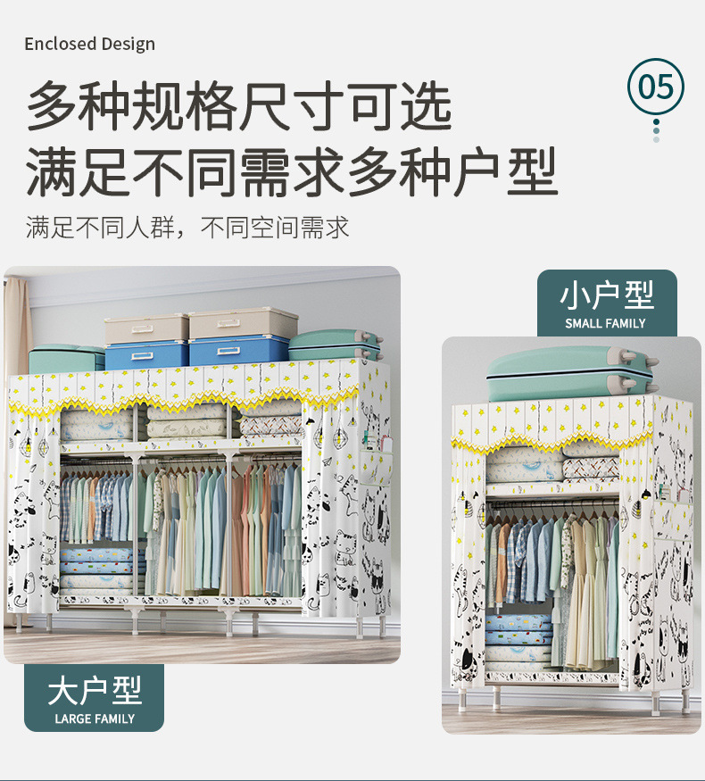 2023 침실 홈 간단한 전체 강철 튜브 천 옷장 임대 집 강화 두꺼운 강한 내구성 조립 스토리지