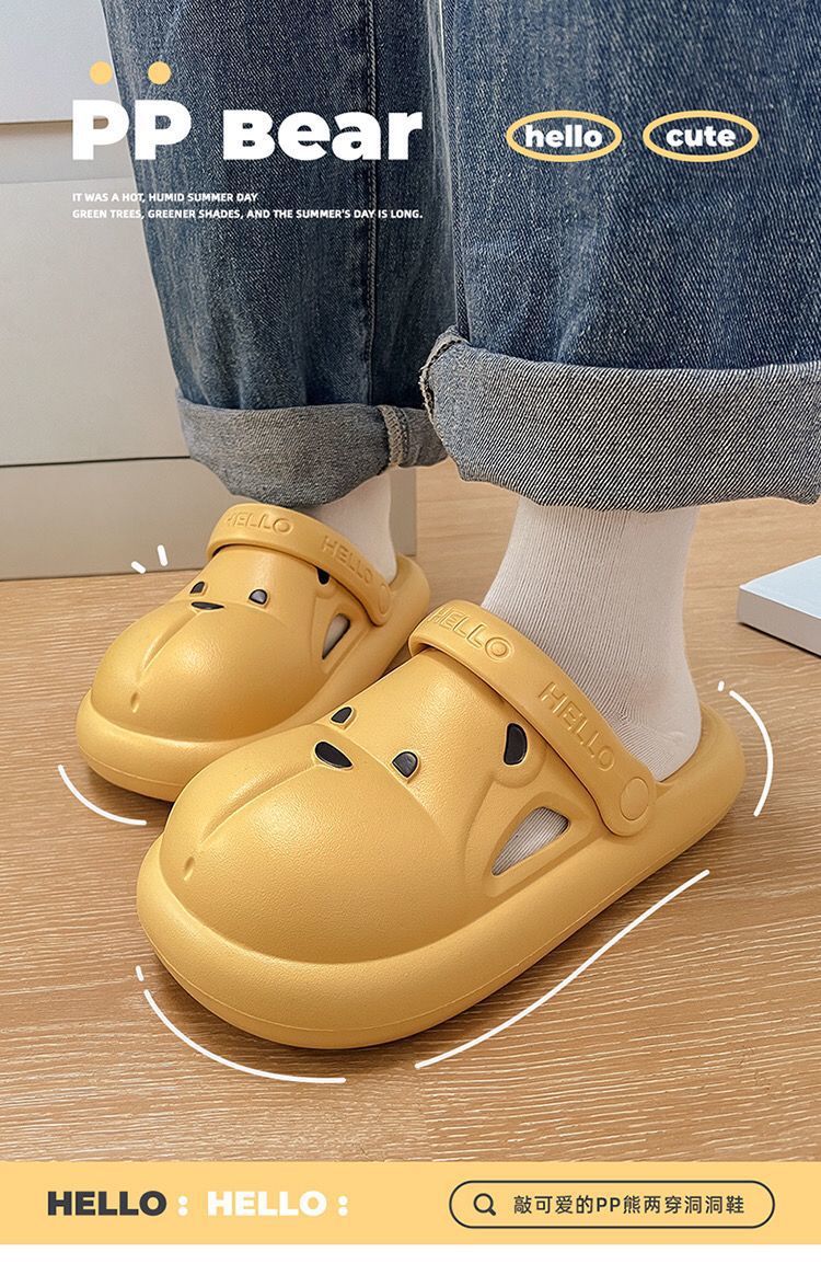 폐 느낌 동굴 신발 여성 여름 실내 홈 미끄럼 방지 커플 귀여운 만화 바오터우 슬리퍼 여성용 외부 착용