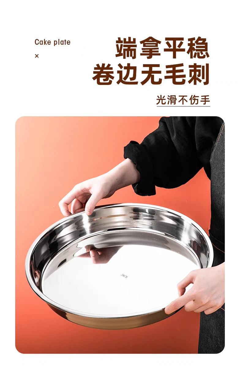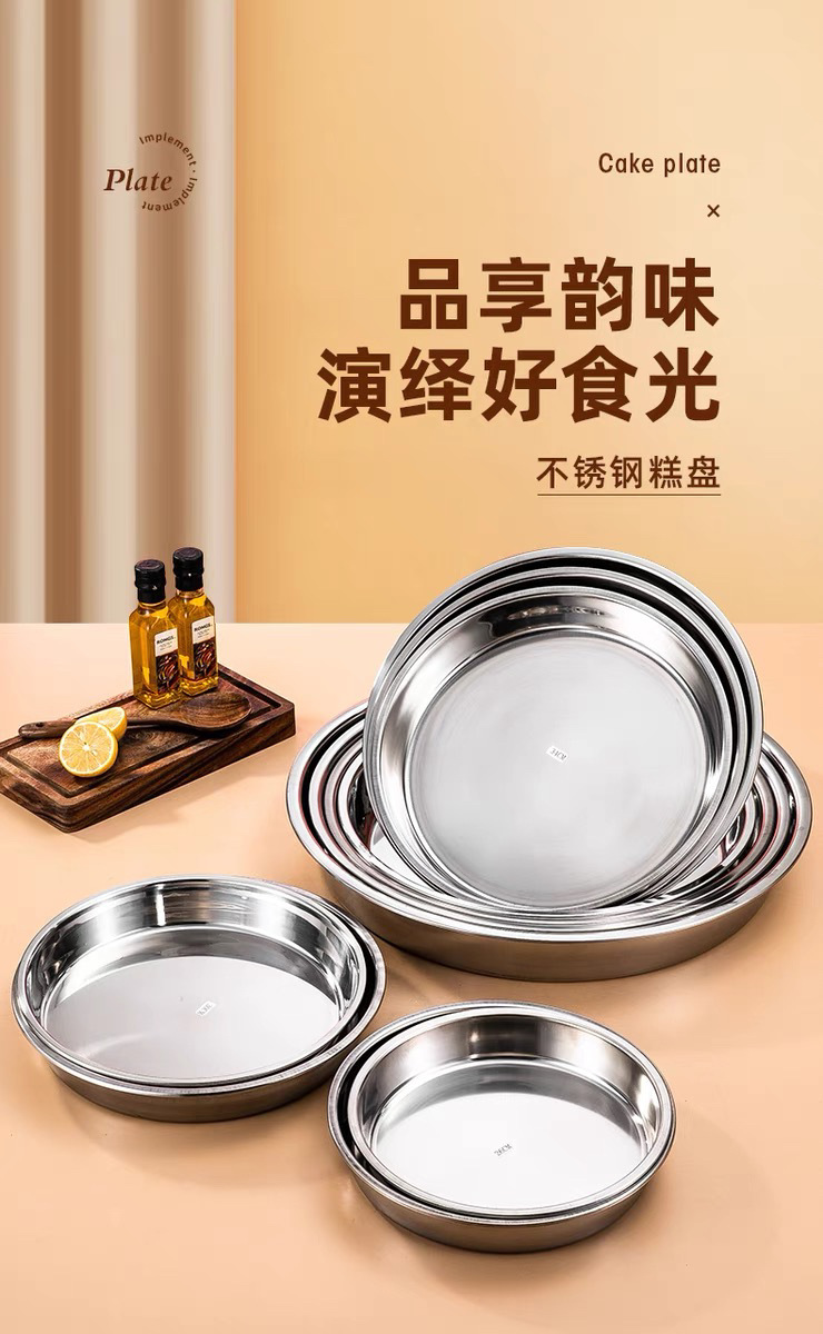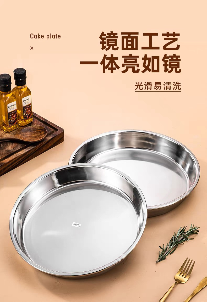 316 스테인레스 스틸 디스크 가정용 얕은 플레이트 쿨 가죽 플레이트 스팀 플레이트 플랫 하단 라운드 트레이 304 접시 대형 플레이트스토어 가기