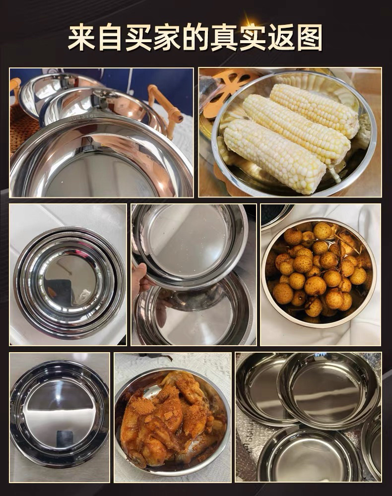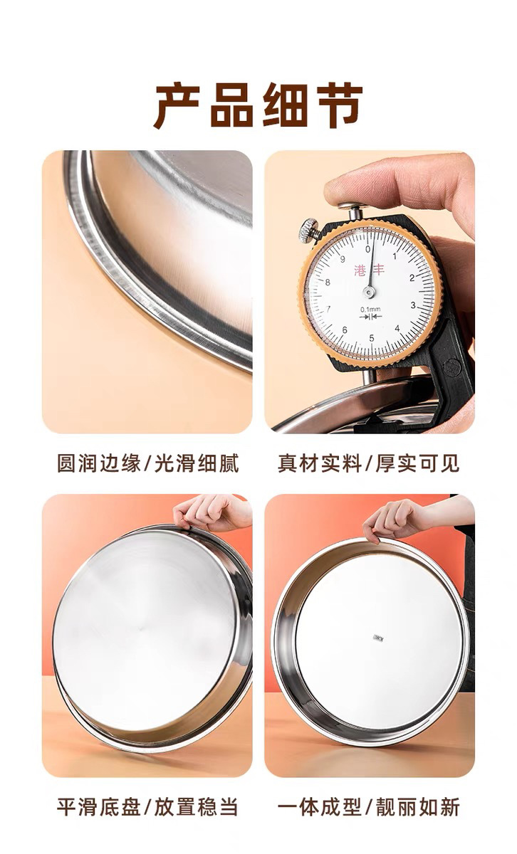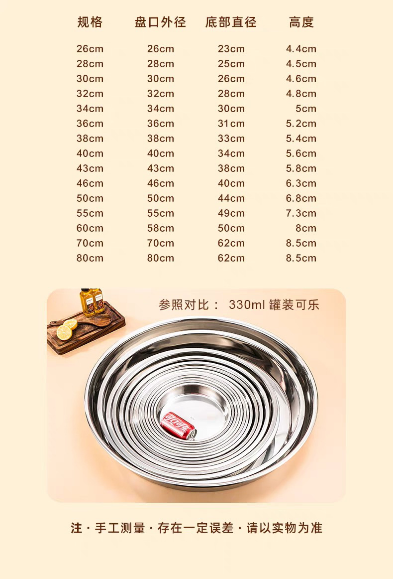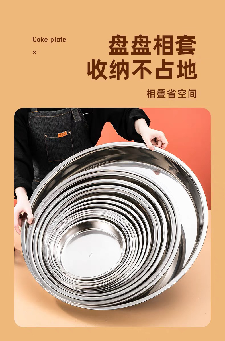 316 스테인레스 스틸 디스크 가정용 얕은 플레이트 쿨 가죽 플레이트 스팀 플레이트 플랫 하단 라운드 트레이 304 접시 대형 플레이트스토어 가기