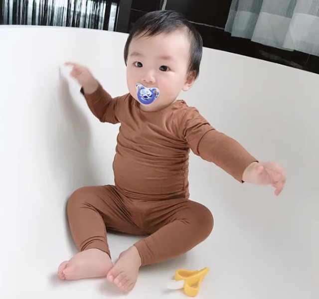 남아 및 여아용 아동용 잠옷, 모달 하이웨이스트 배 보호 홈웨어 속옷 세트, 유아용 얇은 가을 옷과 긴 바지스토어 가기