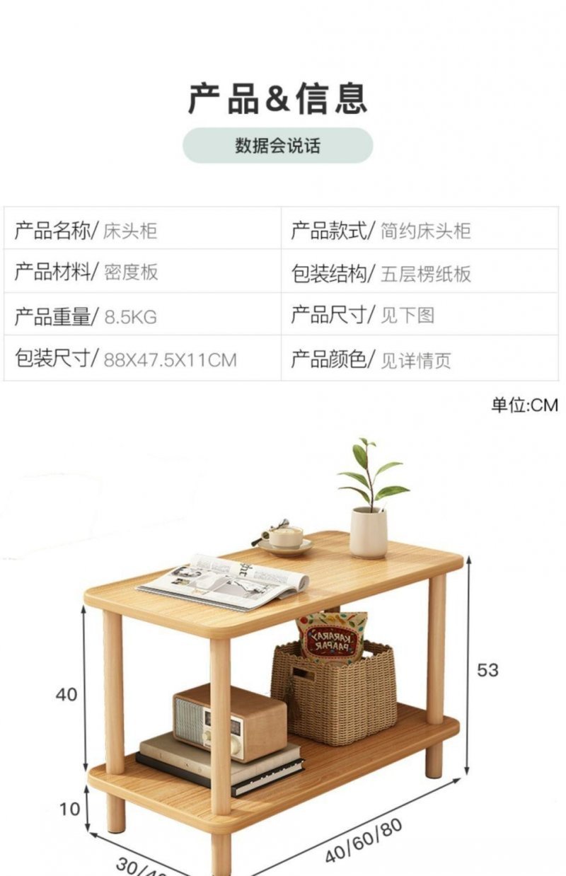 더블 레이어 소파 사이드 테이블, 간단한 커피 테이블, 작은 사각형 테이블, 임대 주택, 침대 옆 테이블, 침실 다층 수납 선반
