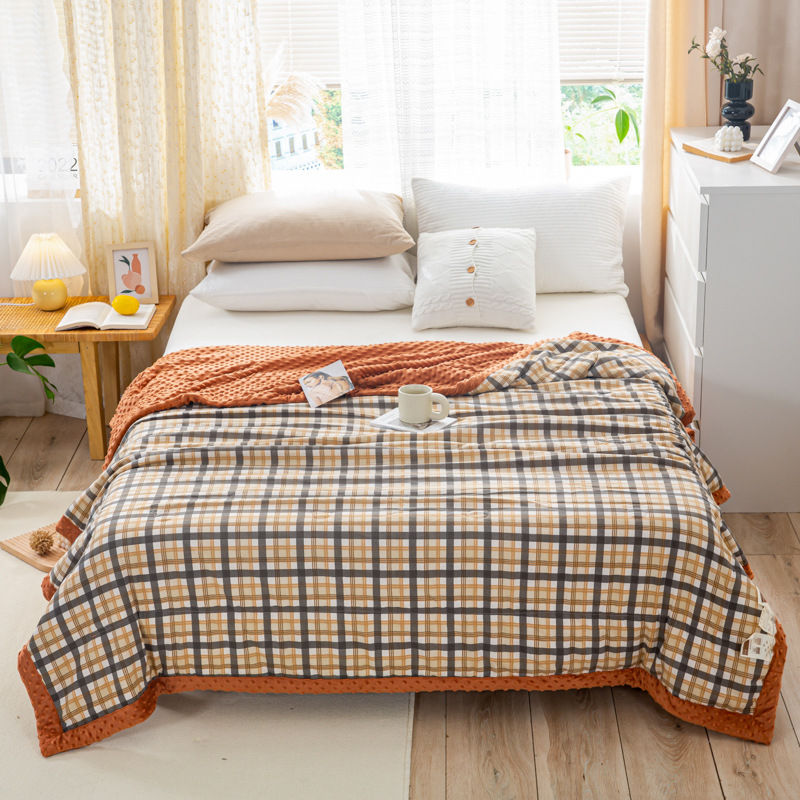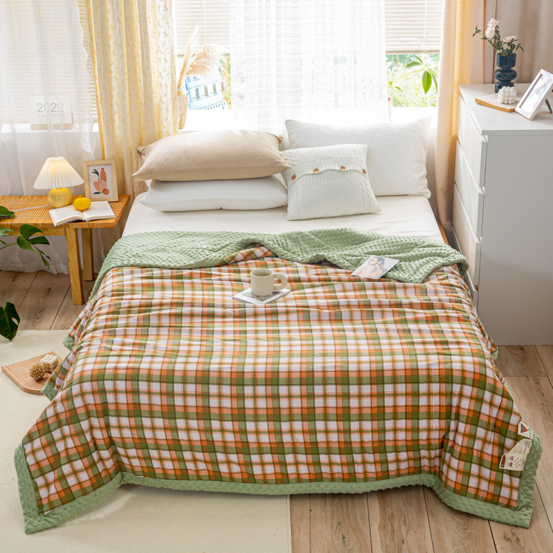 • A급 면마 콩 여름 이불-오렌지색 작은 격자