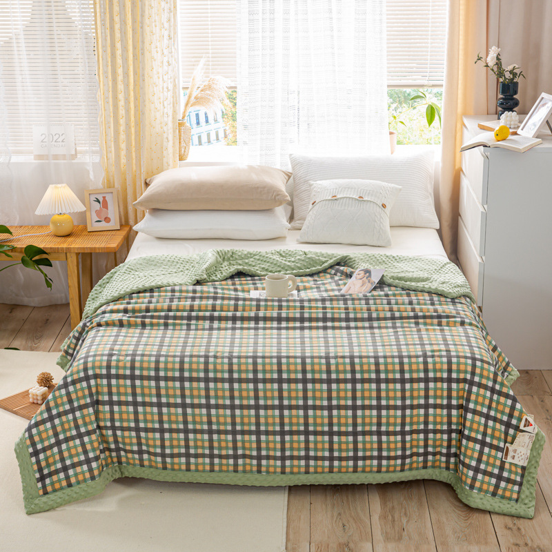 • A급 면마 콩 여름 이불-녹색 작은 격자