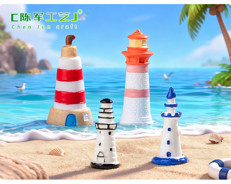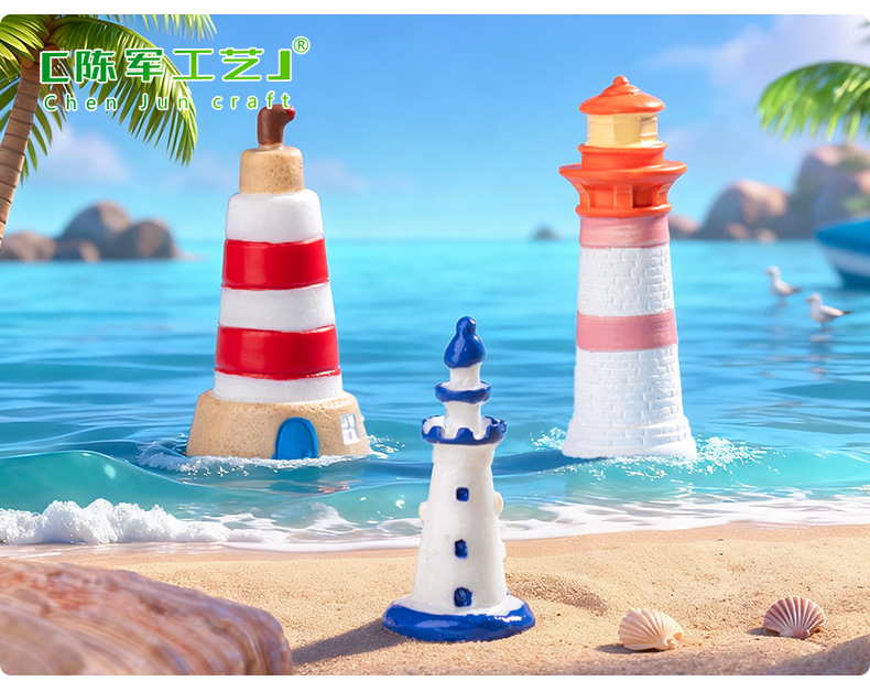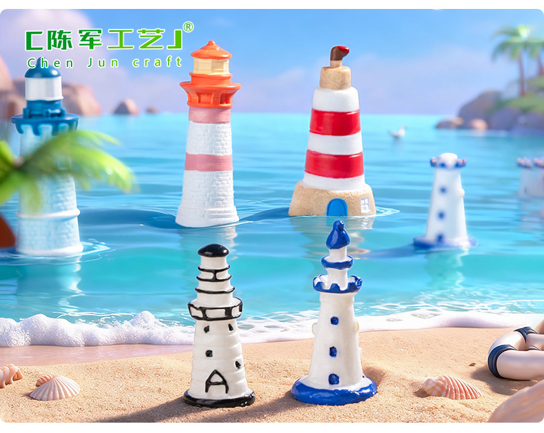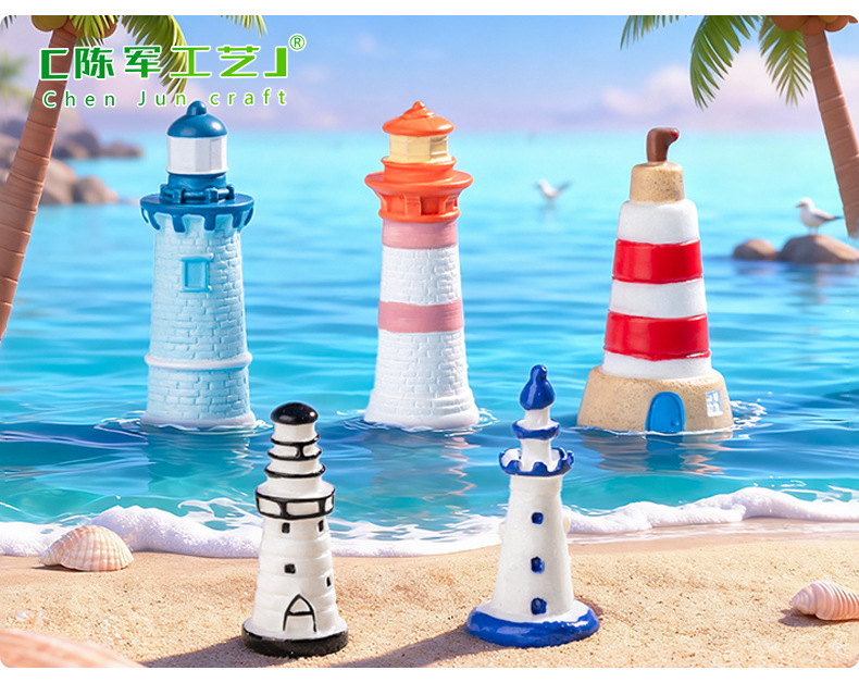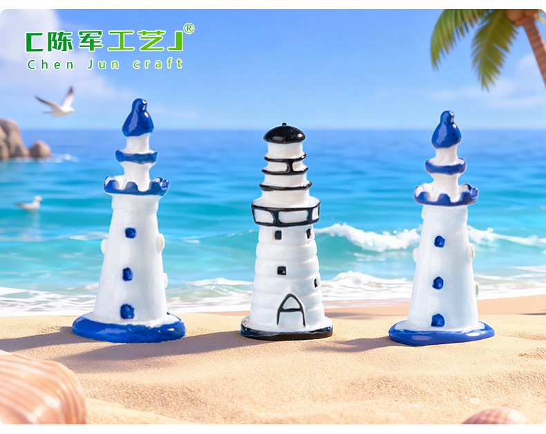 마이크로 풍경 지중해 블루 등대 해변 조경 DIY 장식 에코 병 액세서리 소형 미니 장식품