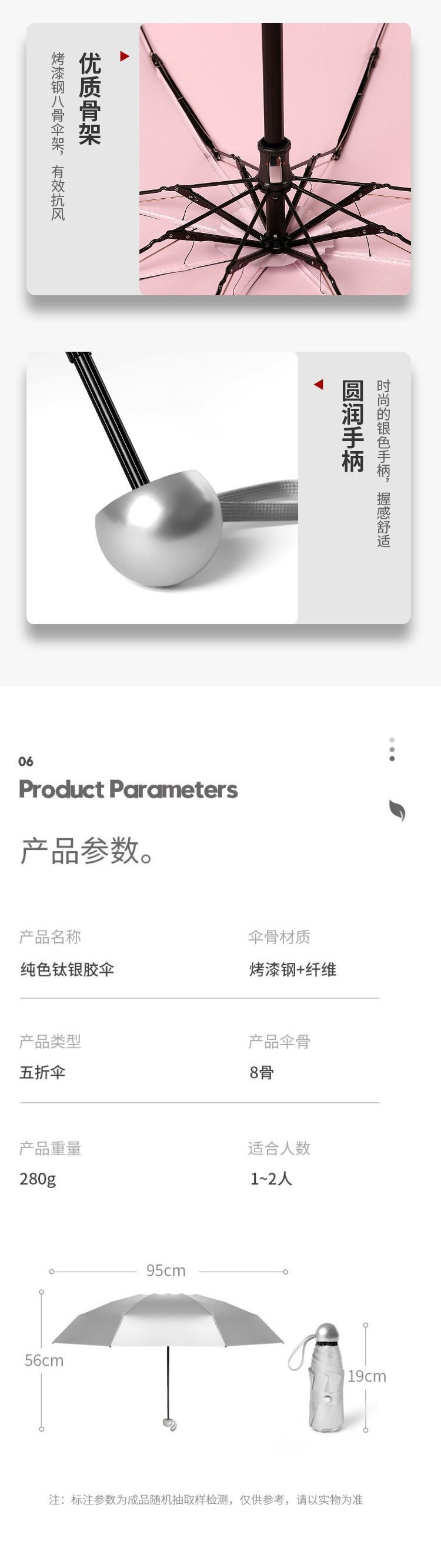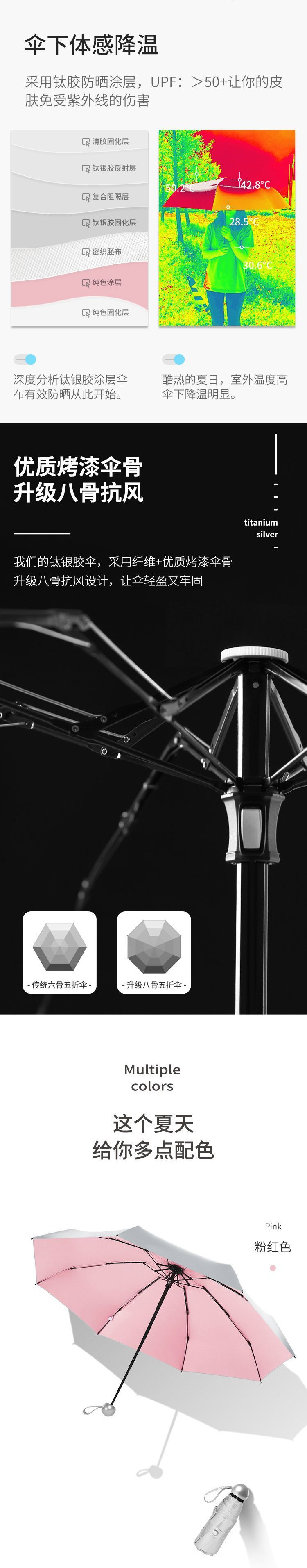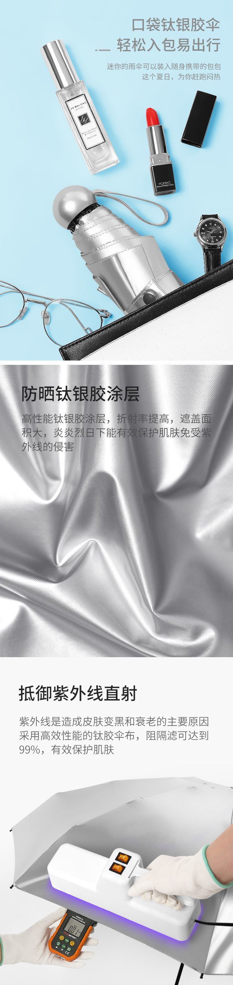 티타늄 실버 50% 접는 선 스크린 우산 이중 사용 태양 우산 작은 휴대용 UV 보호 햇빛 검은 접착제 8 개의 뼈 캡슐 우산