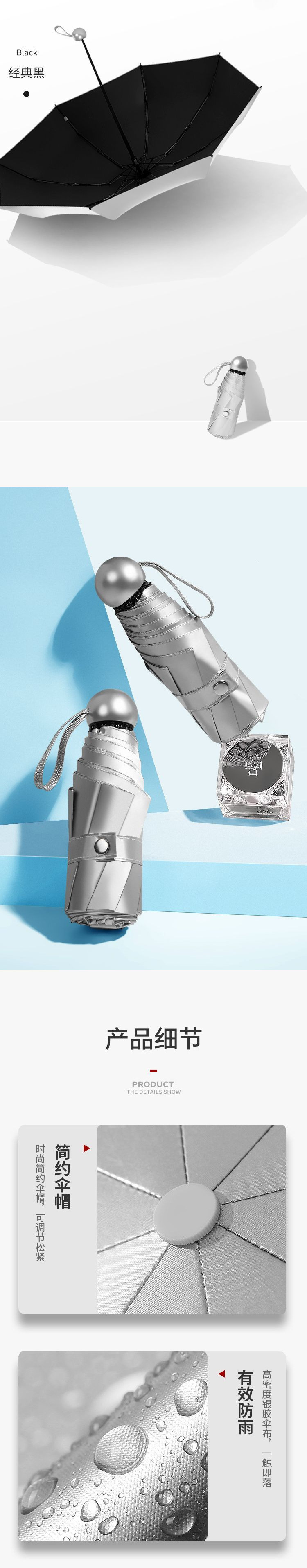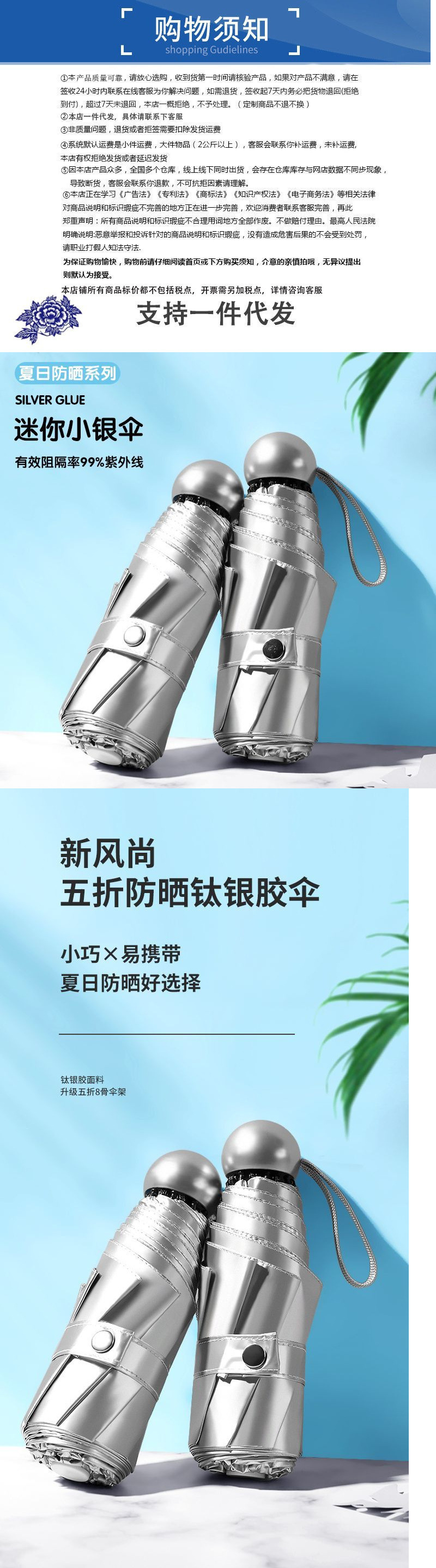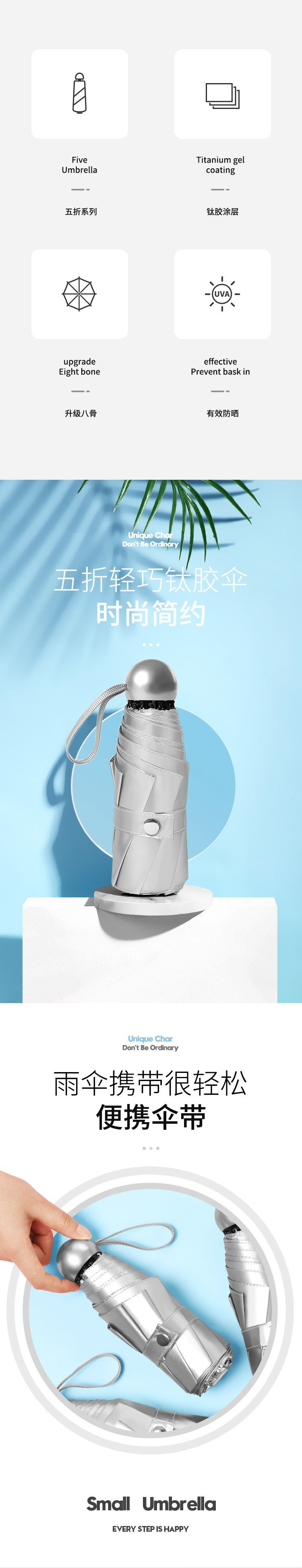 티타늄 실버 50% 접는 선 스크린 우산 이중 사용 태양 우산 작은 휴대용 UV 보호 햇빛 검은 접착제 8 개의 뼈 캡슐 우산스토어 가기