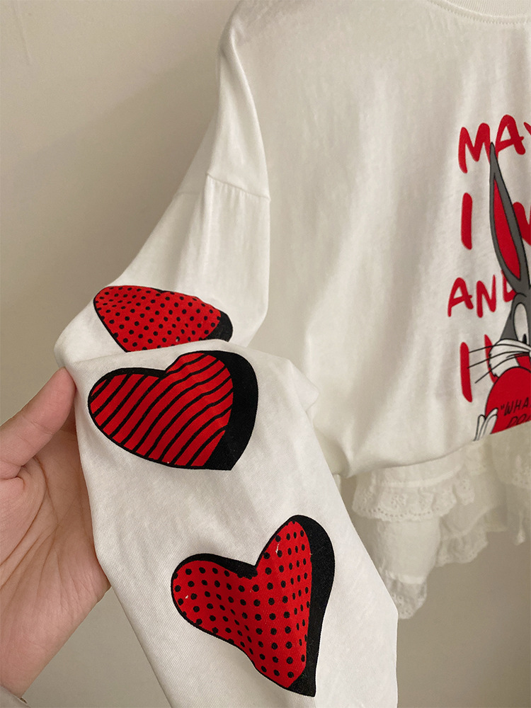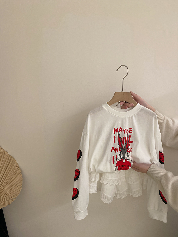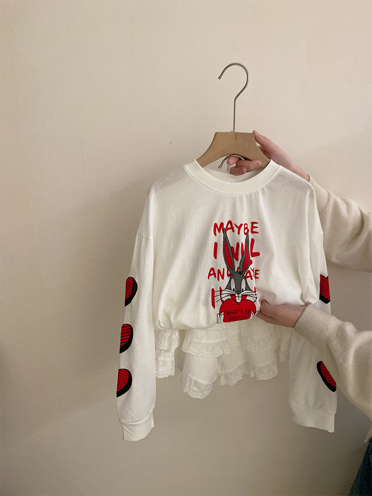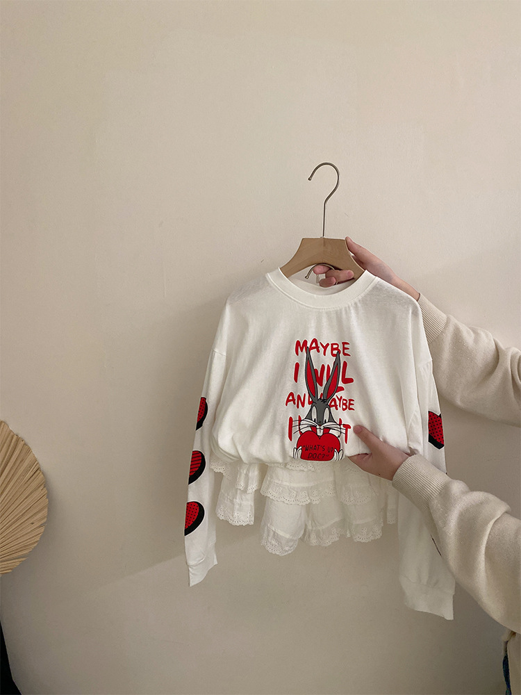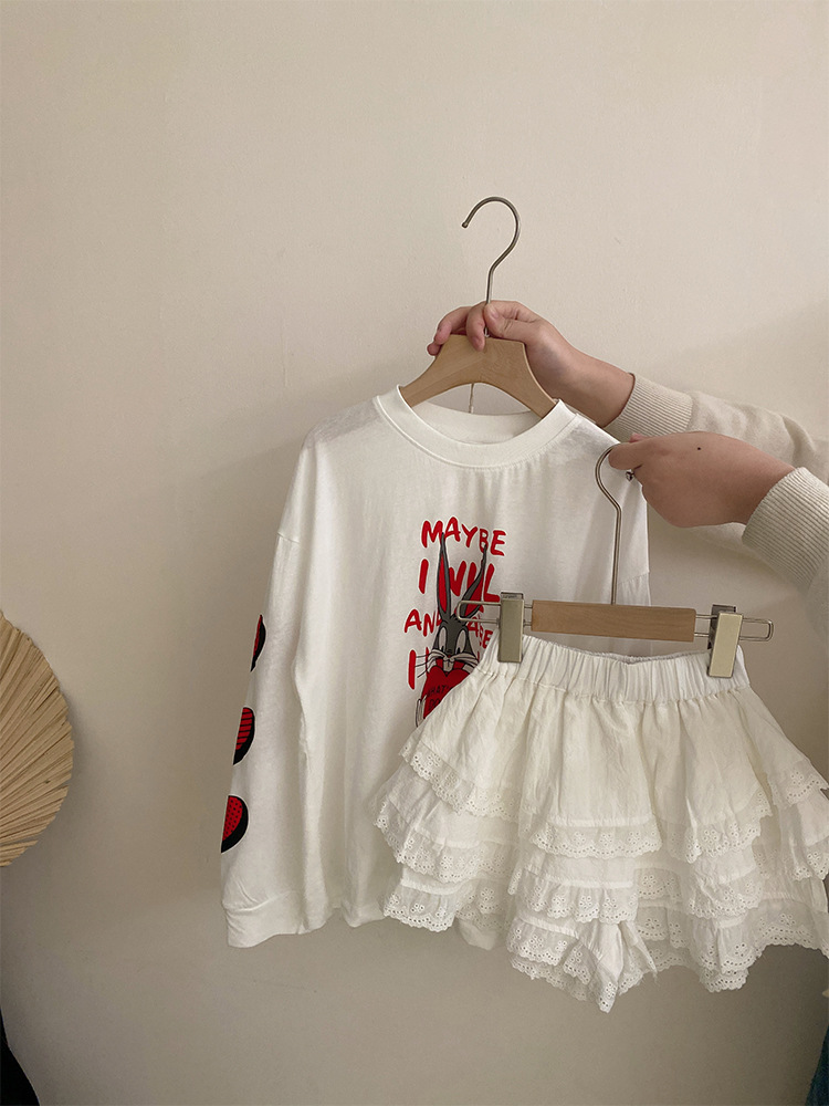 소녀 한국식 만화 인쇄 유행 긴 소매 2025 여름 새로운 스타일 레이스 올 매치 케이크 스커트 유행 투피스 세트