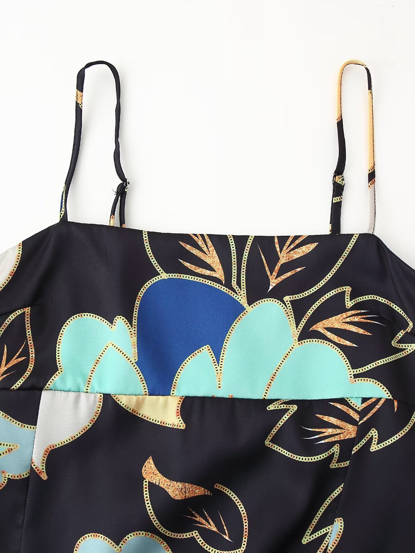 2025 봄 새로운 유럽과 미국의 국경 간 여성 의류 기질 실크 새틴 질감 인쇄 멜빵 원피스 w028 6648스토어 가기