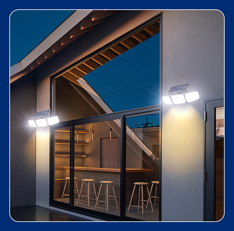 국경 태양 3 헤드 벽 램프 멀티 앵글 조정 야외 안뜰 인체 유도 방수 조명 가로등스토어 가기