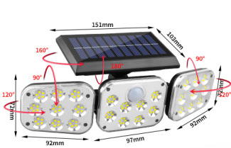 국경 태양 3 헤드 벽 램프 멀티 앵글 조정 야외 안뜰 인체 유도 방수 조명 가로등
