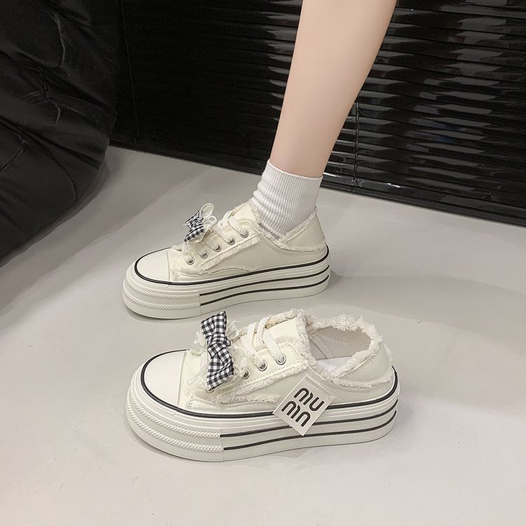 핑크 프린지 프린지 플랫폼 캔버스 신발 여성의 2025 년 봄과 여름 새로운 투웨어 캐주얼 신발 학생 높이 증가 보드 신발스토어 가기