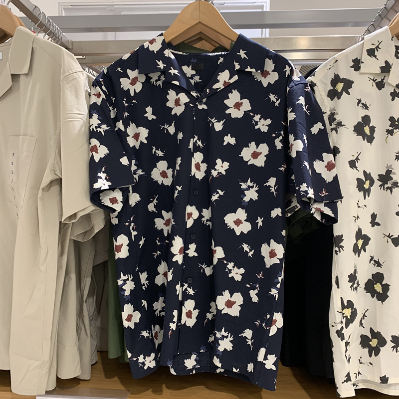 일본 남성 여성 의류 25 여름 새로운 모달 혼합 인쇄 오픈 칼라 셔츠 짧은 소매 셔츠 477644