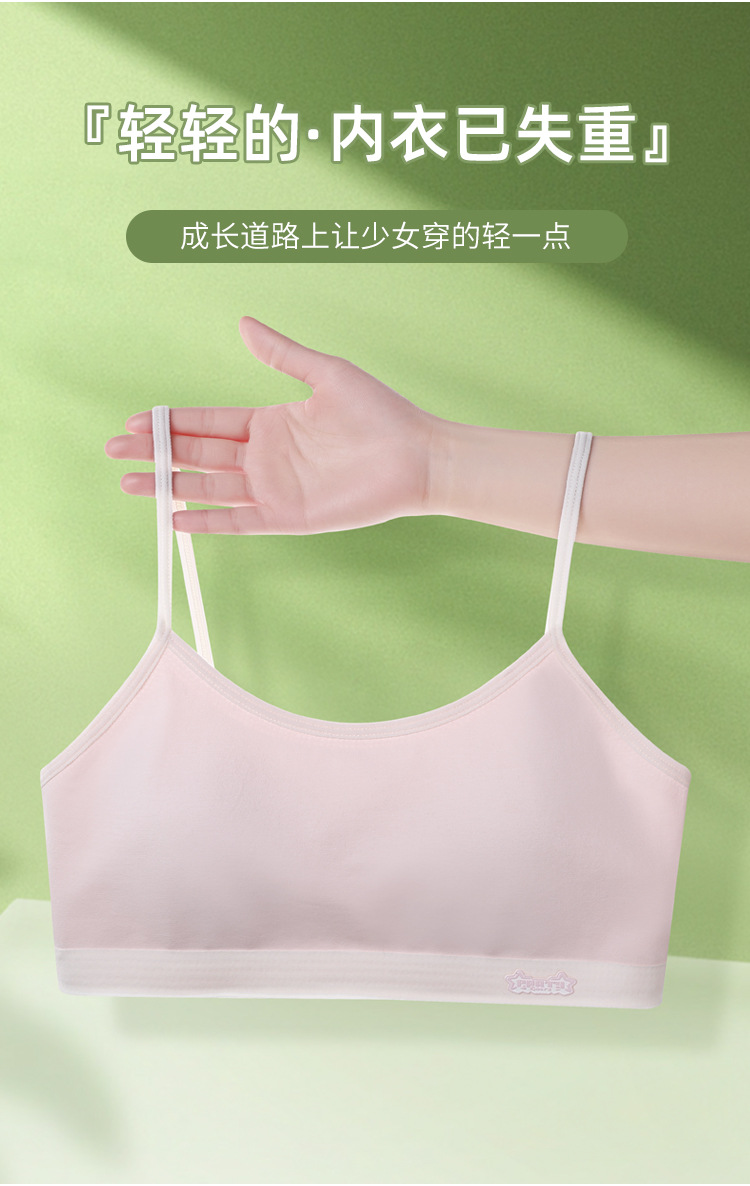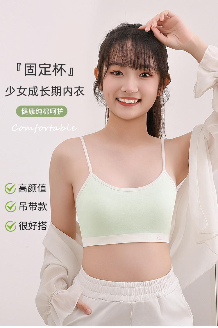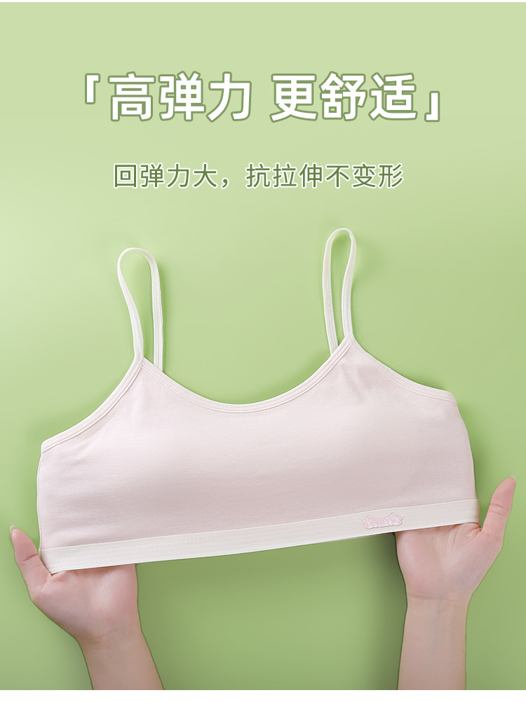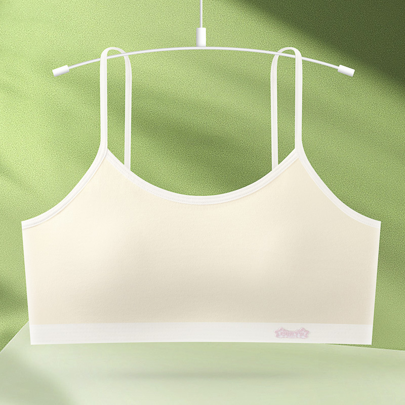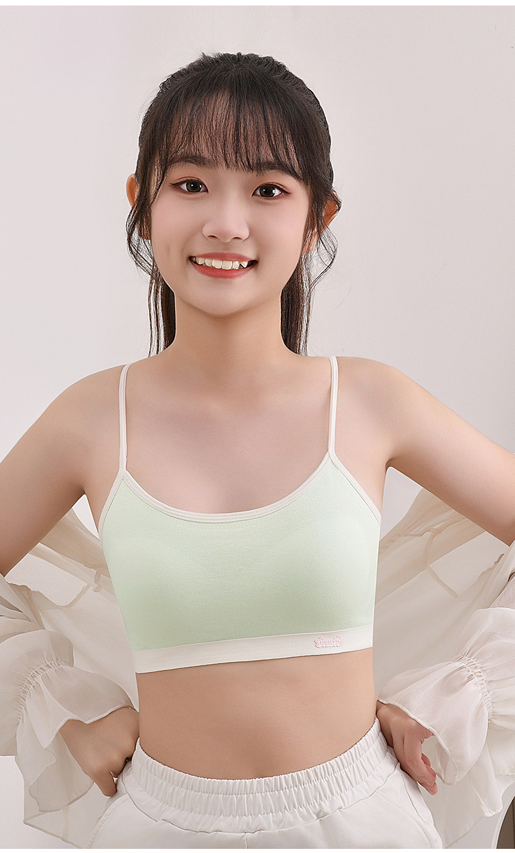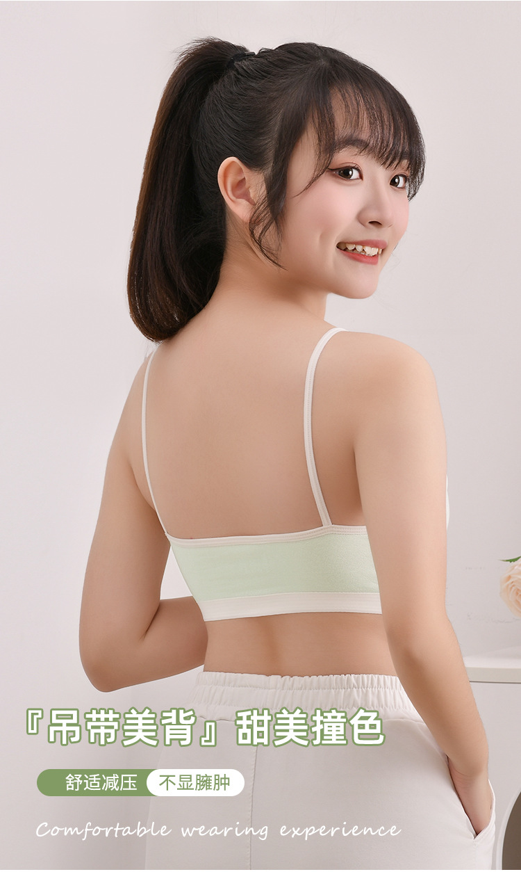 새로운 성장기 순면 서스펜더 소녀 속옷, 편안하고 와이어가 없는 대비색 조끼, 돌출 방지 고정 컵 브라