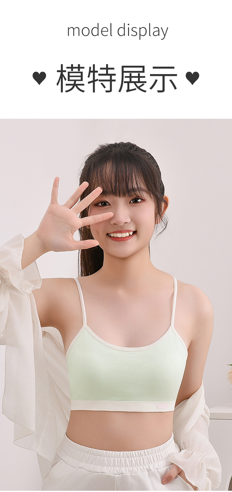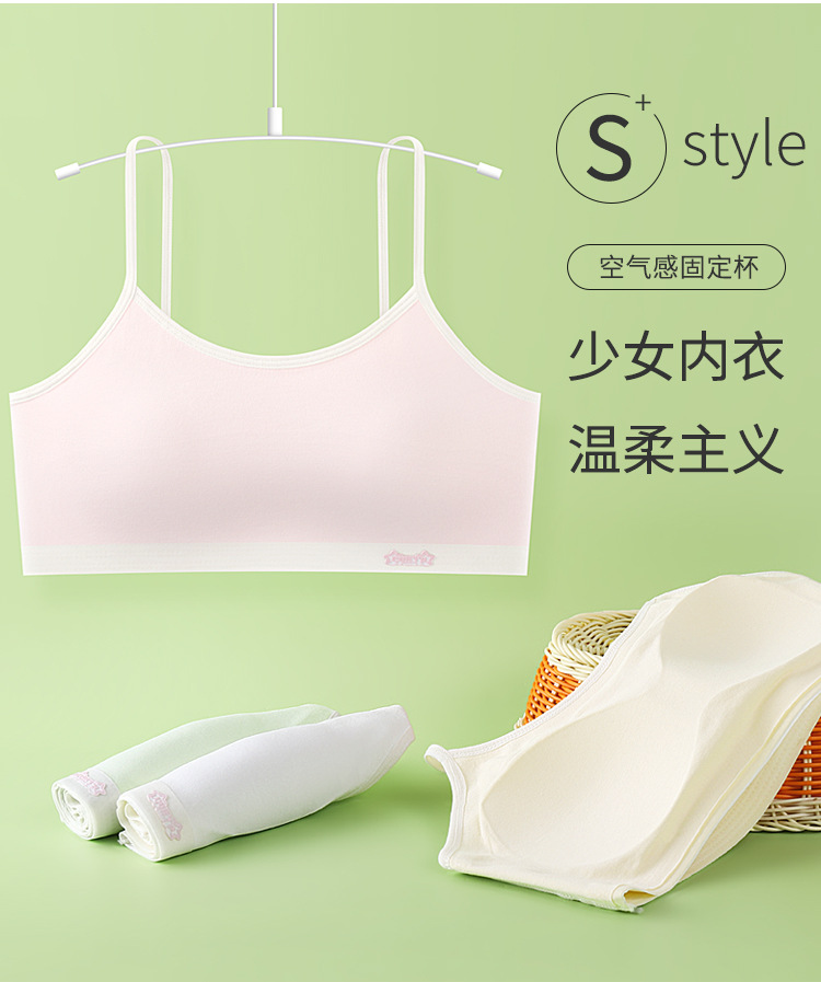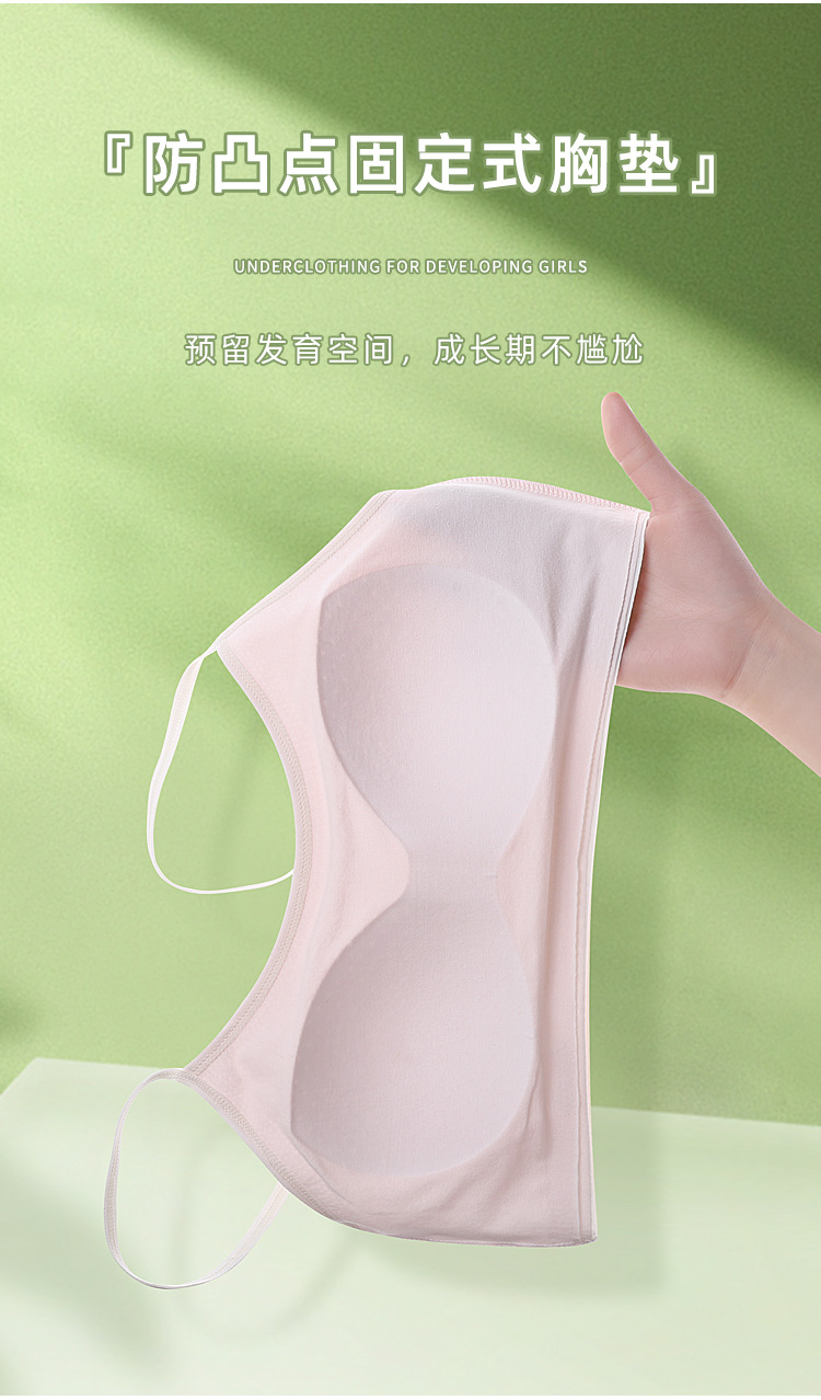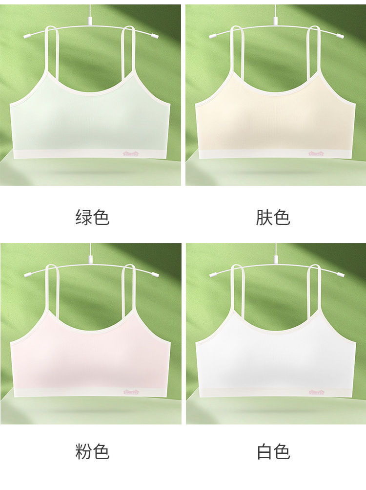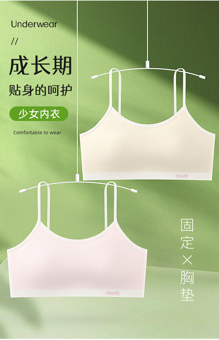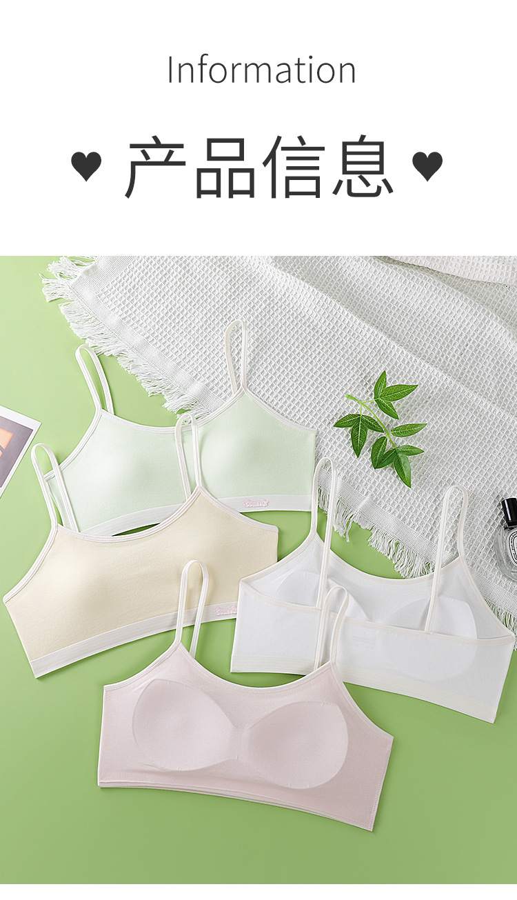 새로운 성장기 순면 서스펜더 소녀 속옷, 편안하고 와이어가 없는 대비색 조끼, 돌출 방지 고정 컵 브라