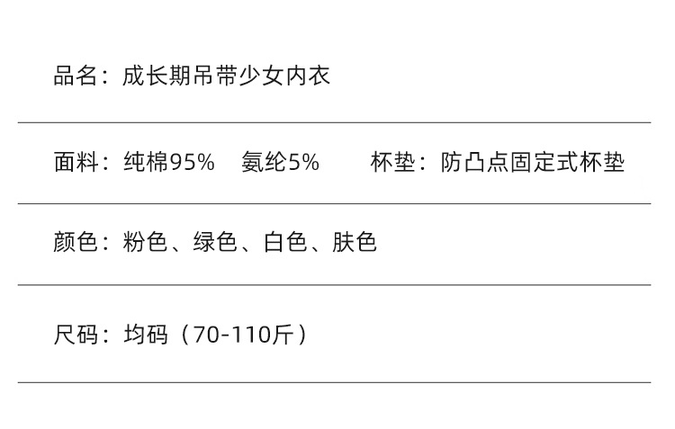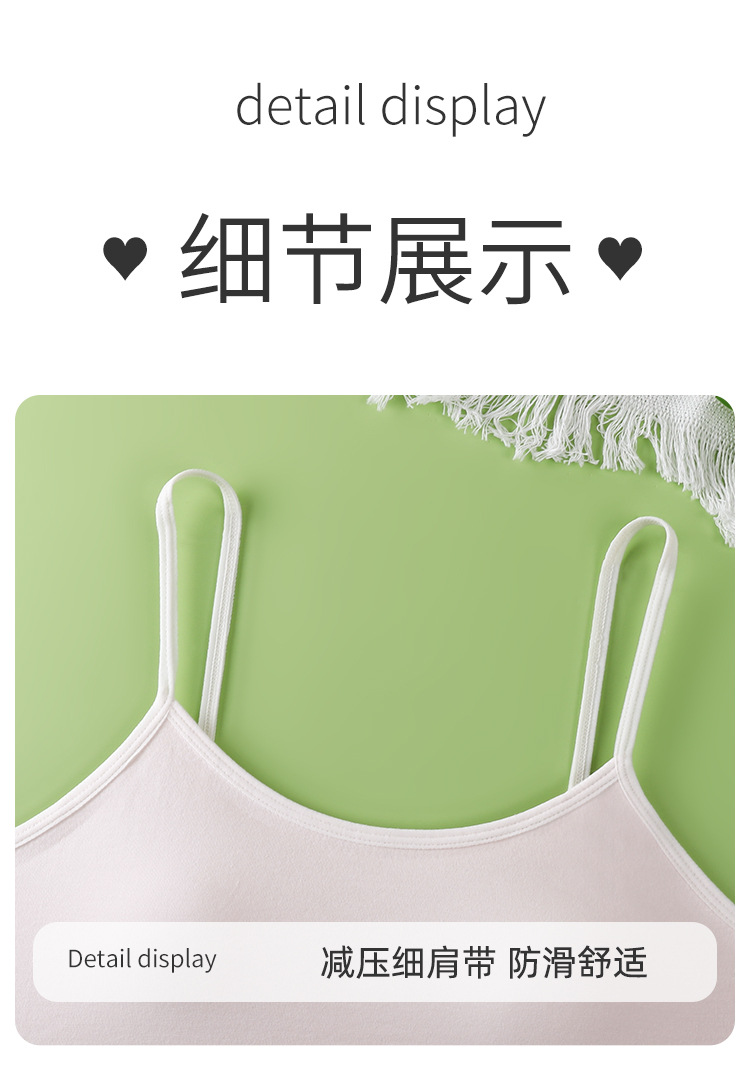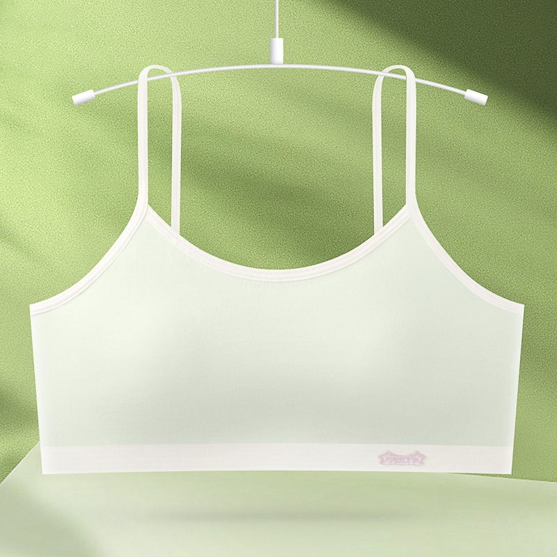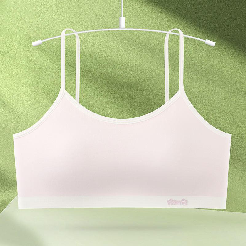 새로운 성장기 순면 서스펜더 소녀 속옷, 편안하고 와이어가 없는 대비색 조끼, 돌출 방지 고정 컵 브라스토어 가기