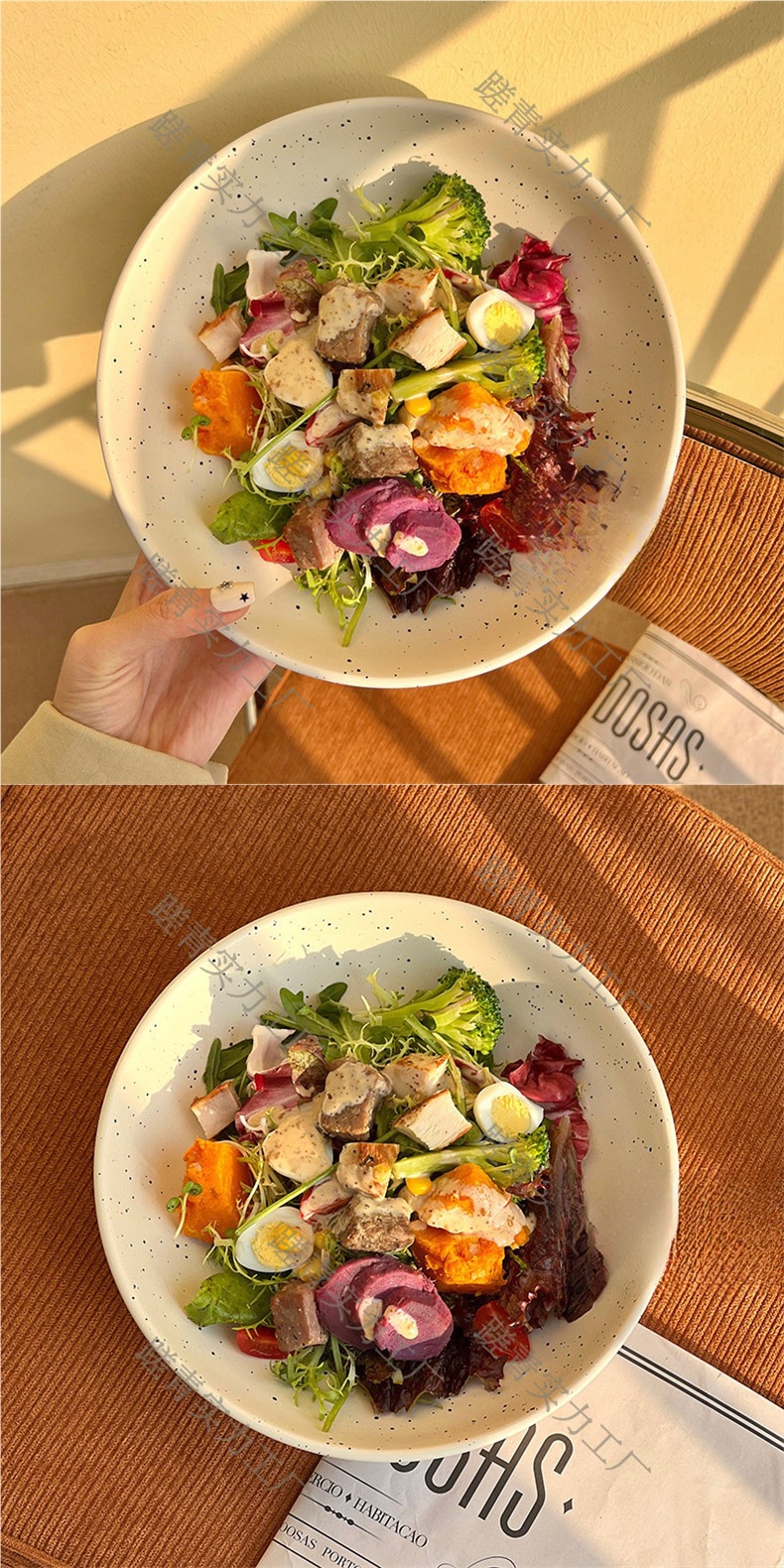 Ins 스타일 잉크 도트 플레이트 세라믹 스플래시 잉크 그릇 크고 깊은 접시 과일 샐러드 가정용 카레 쌀 인스타시 Nink Bowl 내구성