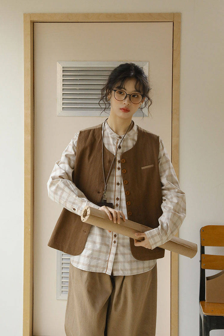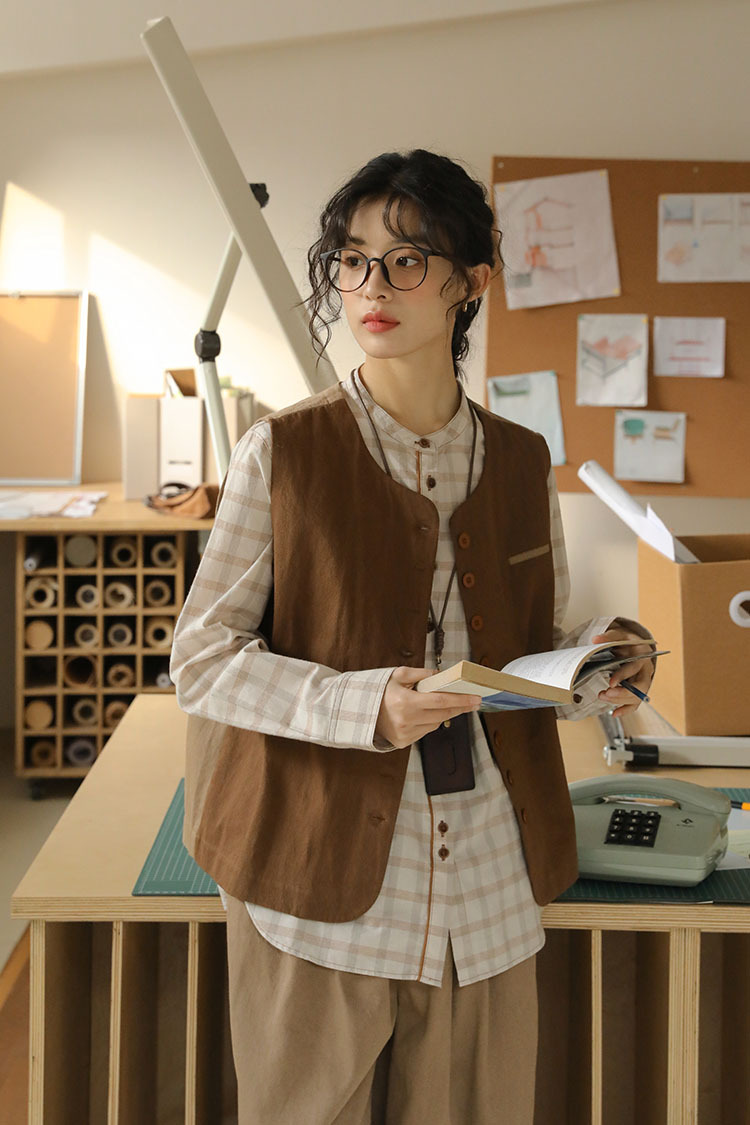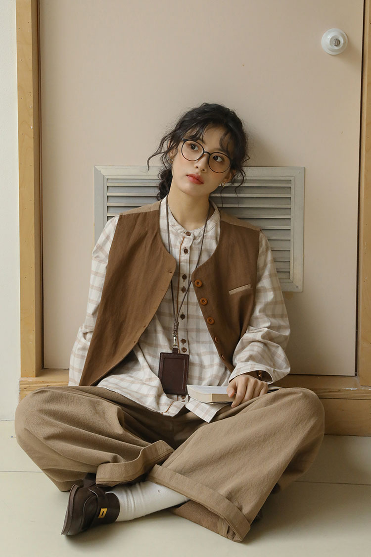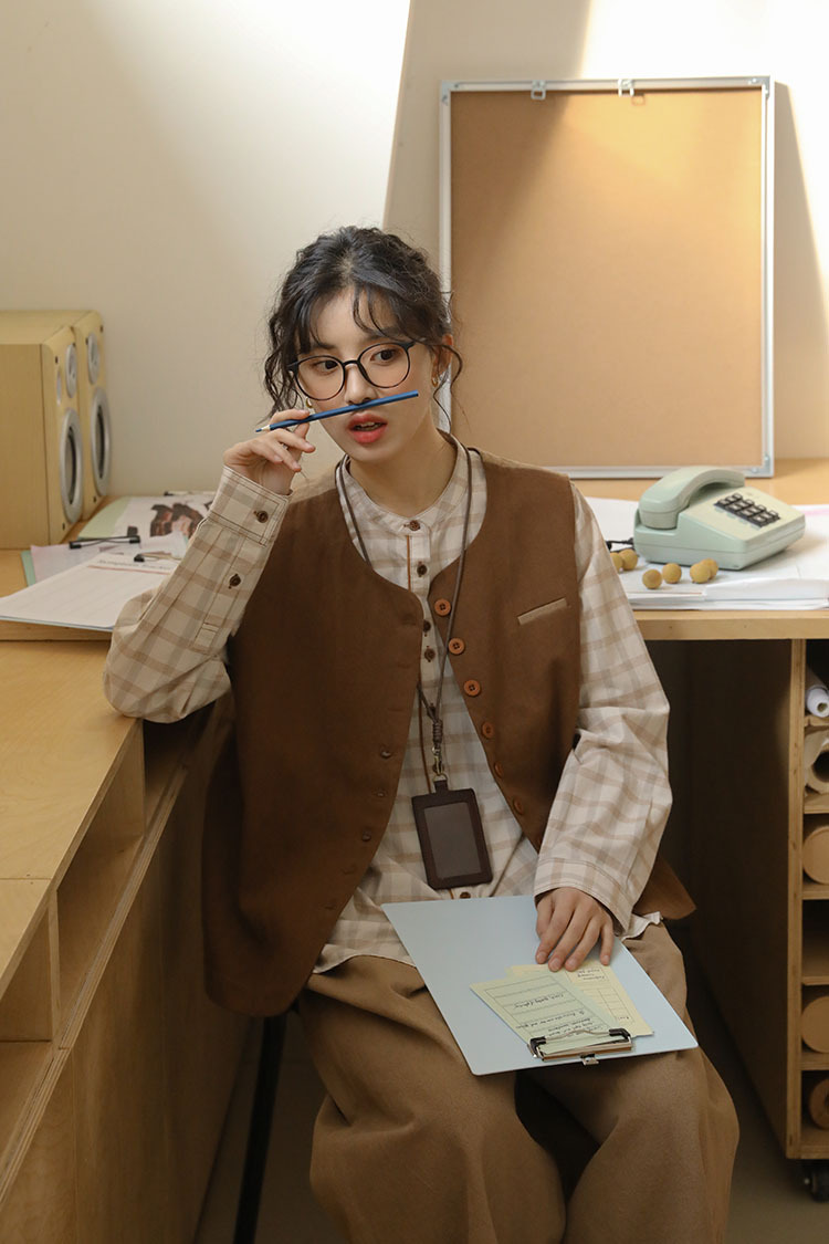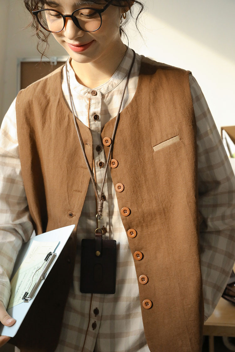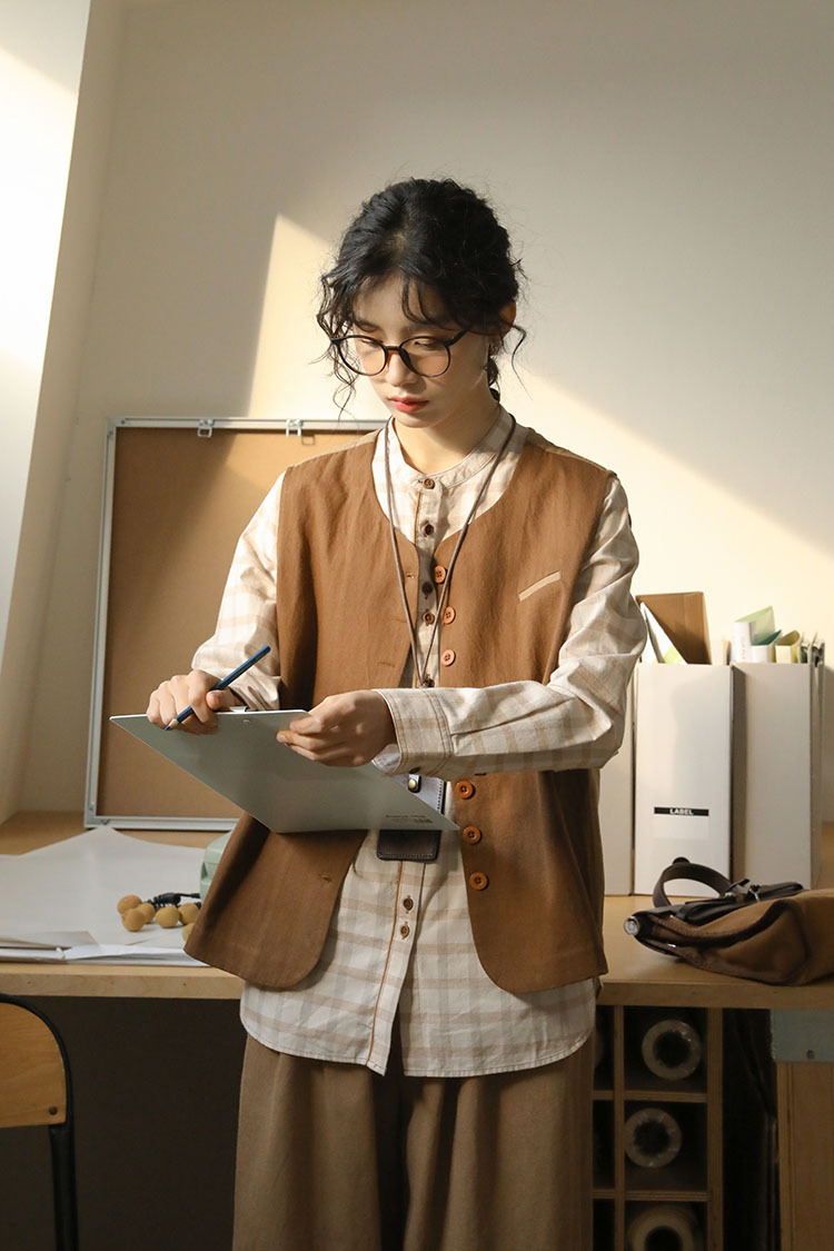 봄과 여름 2025 새로운 일본식 분위기 단일 브레스트 디자인 크루 넥 세트 조끼 웨어 재킷 여성용 자켓스토어 가기