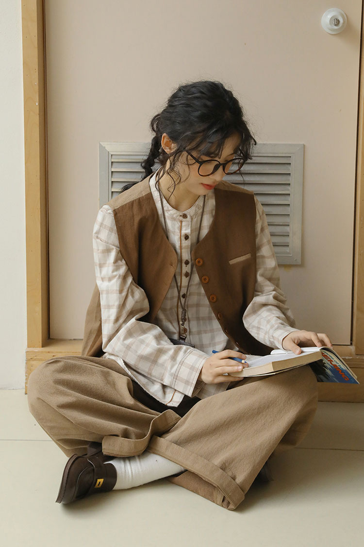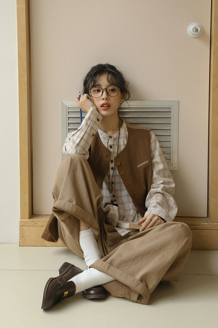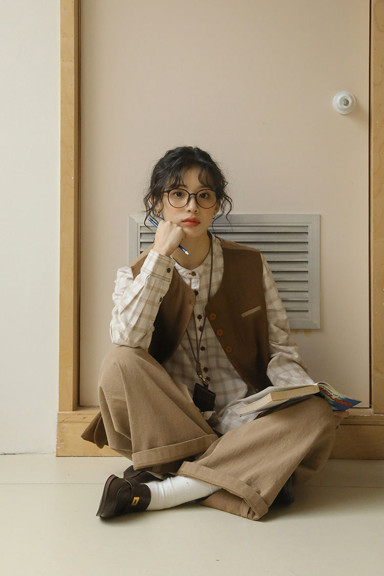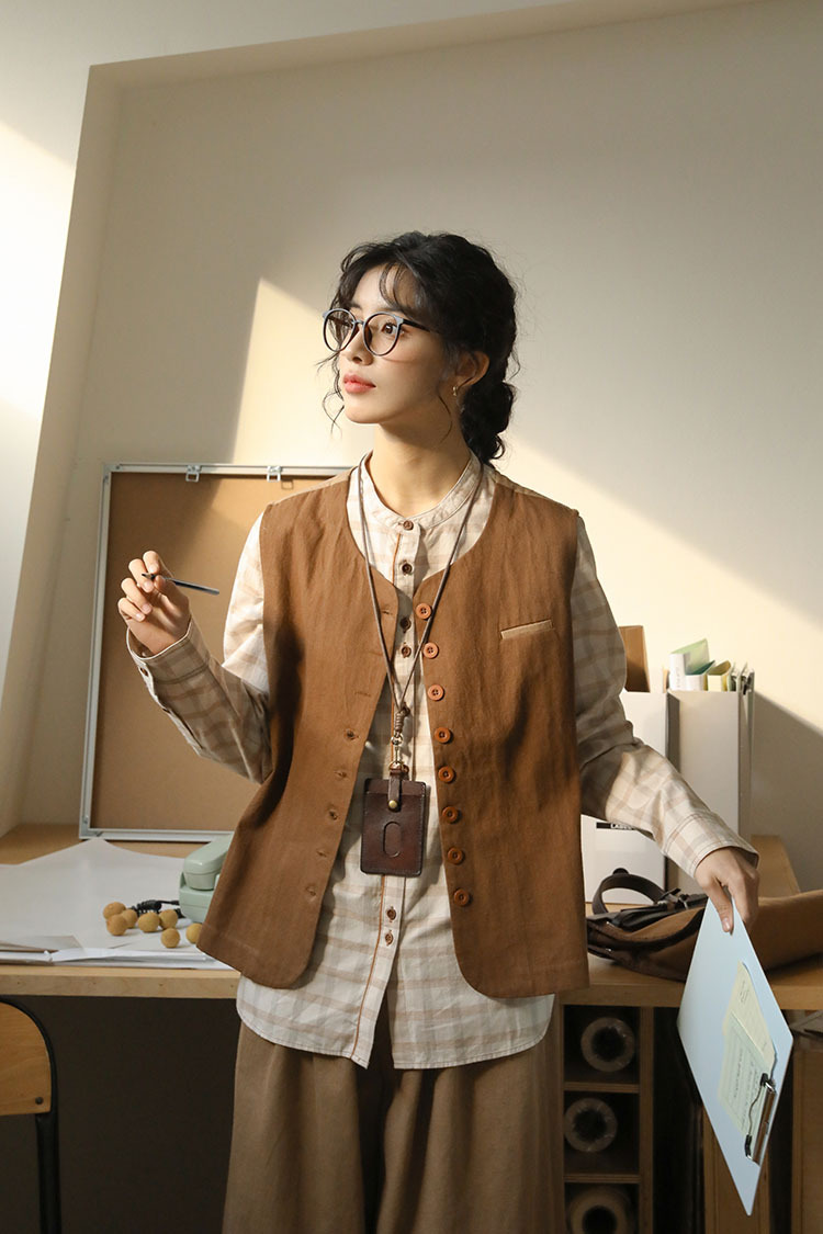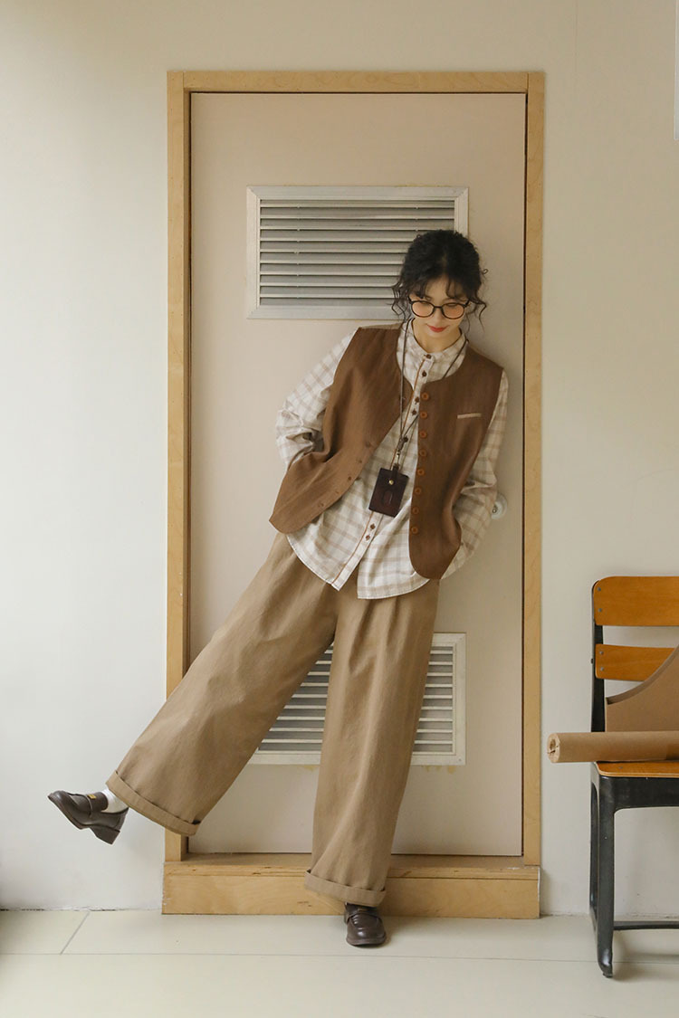 봄과 여름 2025 새로운 일본식 분위기 단일 브레스트 디자인 크루 넥 세트 조끼 웨어 재킷 여성용 자켓스토어 가기