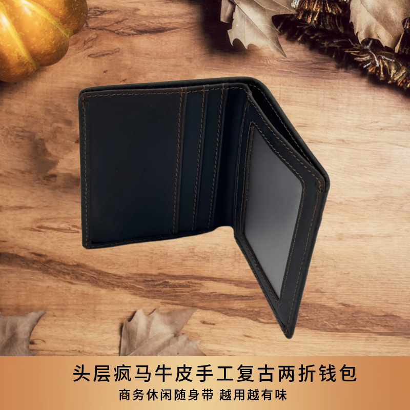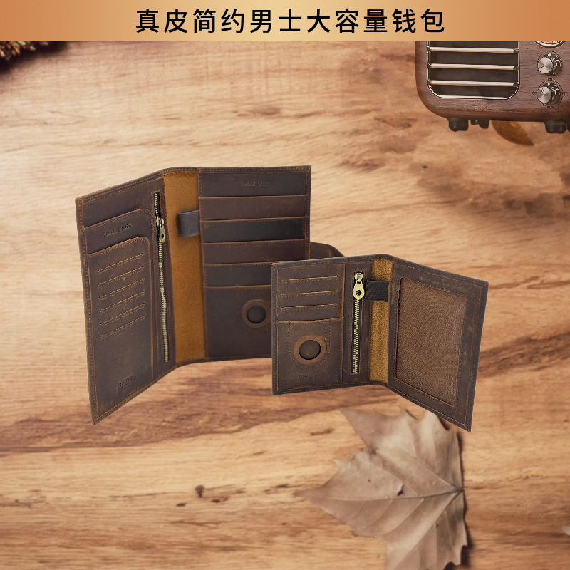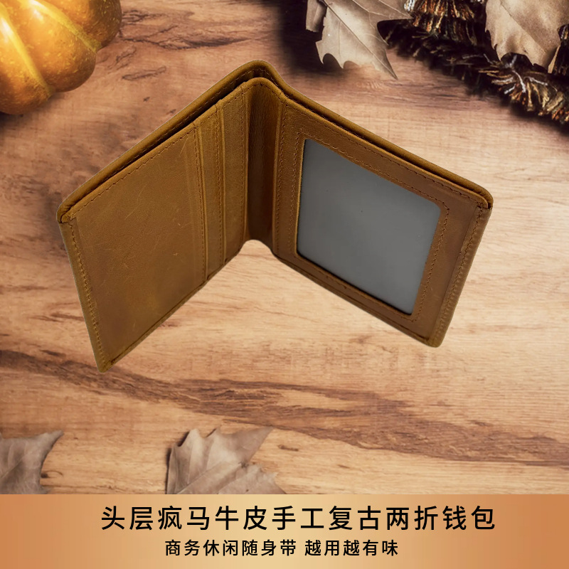 대외 무역 새로운 미친 말 가죽 지갑 남자의 고급 센스 멀티 카드 카우보이 지갑 정품 가죽 레트로 클러치 캐주얼 가방스토어 가기
