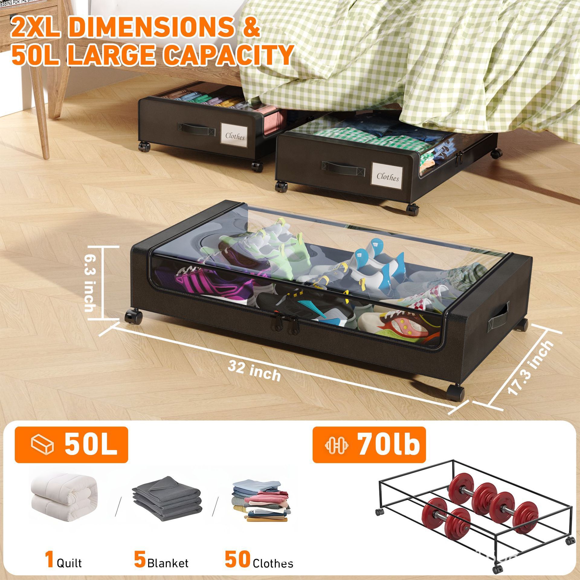 Amazon pulley 소파 베드 바닥 방진 커버 접이식 보관함 신발 담요 옷 이불 보관함