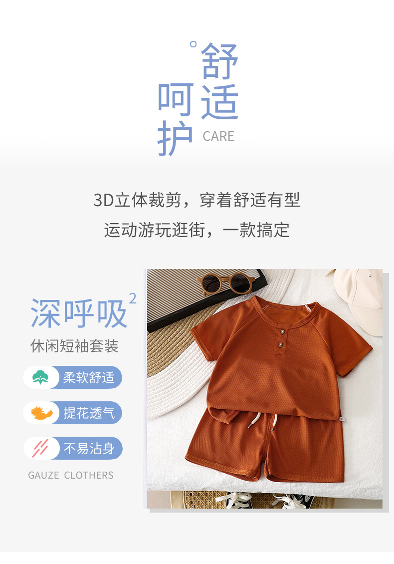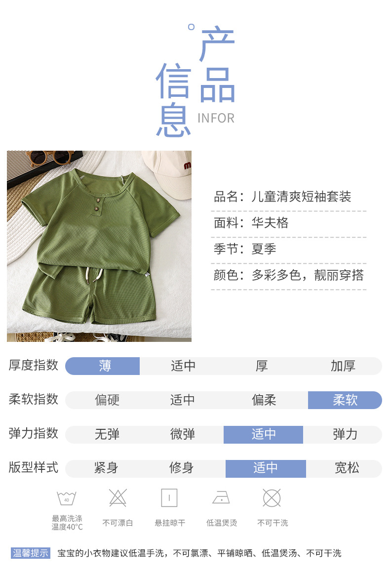 어린이 반팔 세트 여름 새 소년 반바지 한국 어린이 와플 아기 여름 아동복 도매