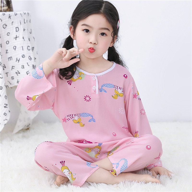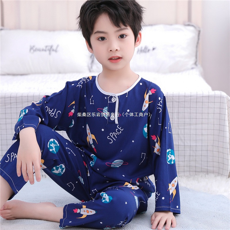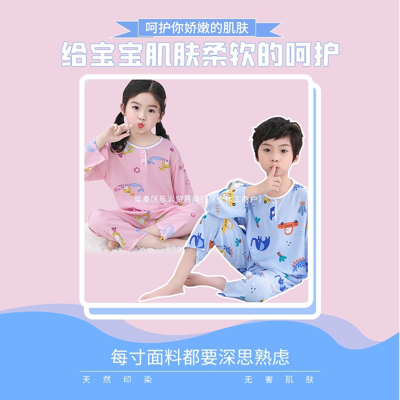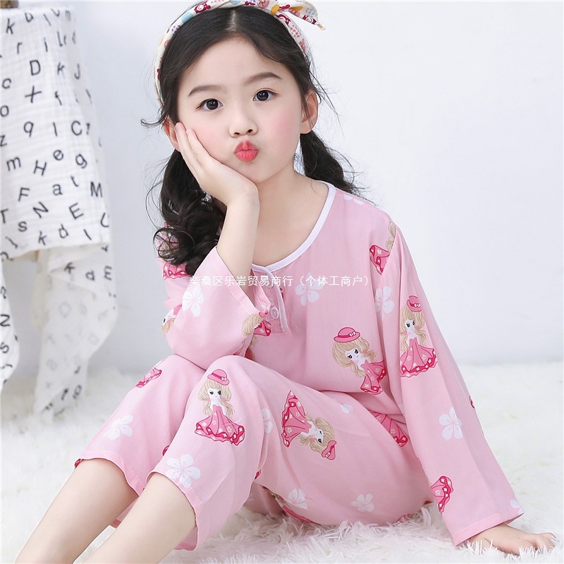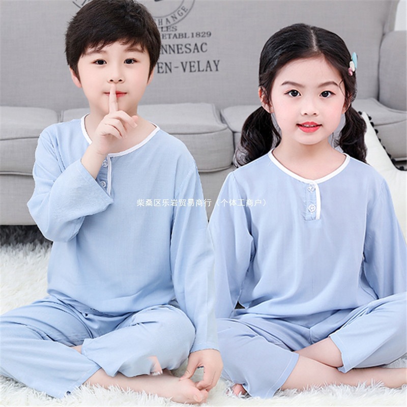 어린이 잠옷 소년 봄과 여름 면 실크 아기 소녀 실크 큰 어린이 세트 어린이 에어컨 홈 도매