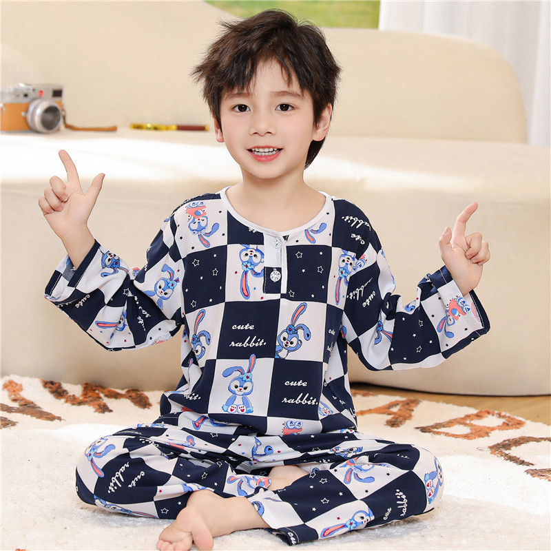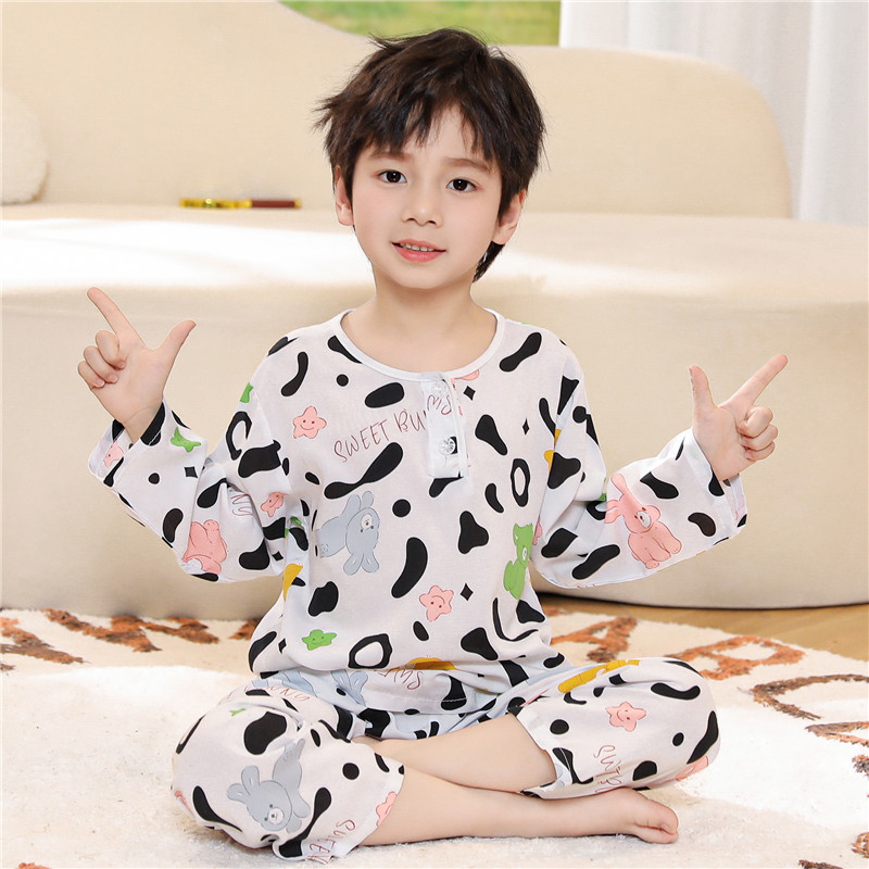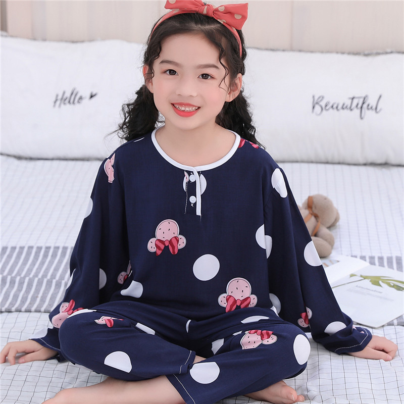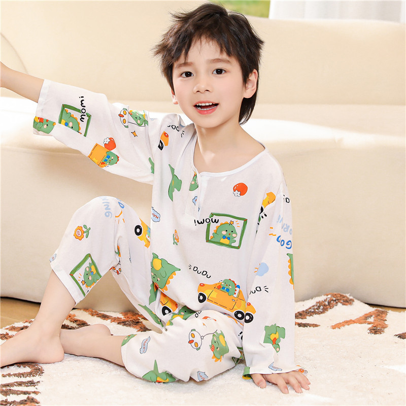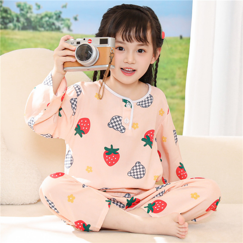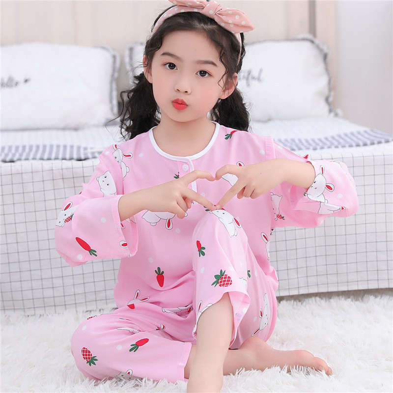 어린이 잠옷 소년 봄과 여름 면 실크 아기 소녀 실크 큰 어린이 세트 어린이 에어컨 홈 도매