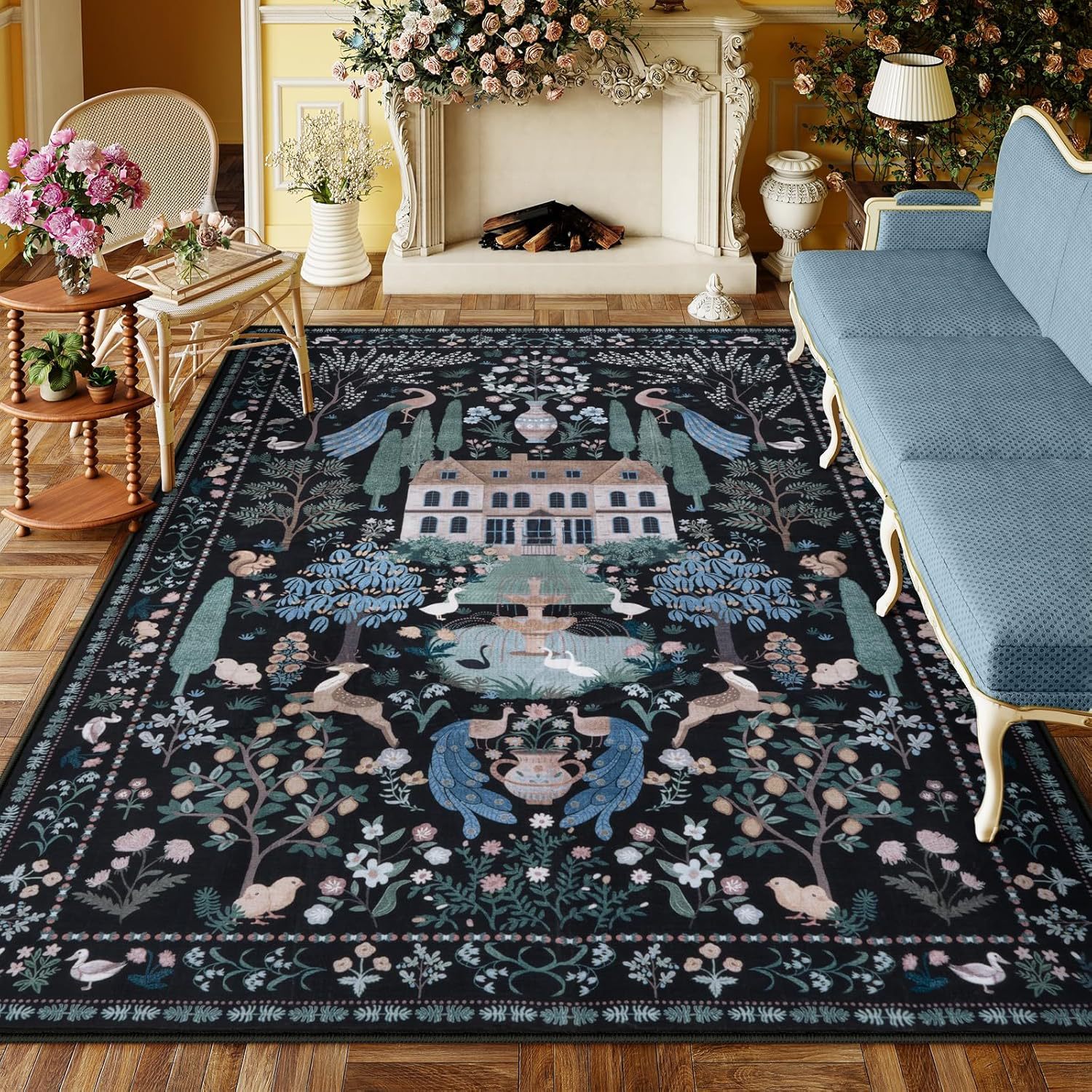 꽃과 새 크리스탈 벨벳 카펫 침실 거실 얼룩 방지 흡수성 침대 옆 매트 드레스룸 장식 카펫 보헤미안 스타일스토어 가기