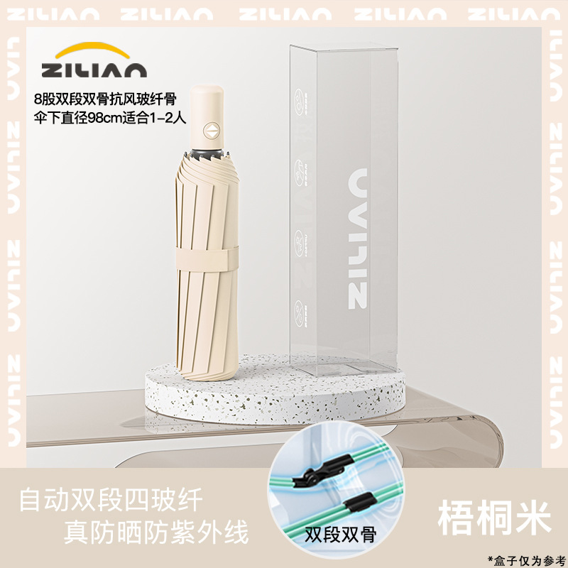 • 8본 수동 자외선 차단 우산 - 흑요석 블랙