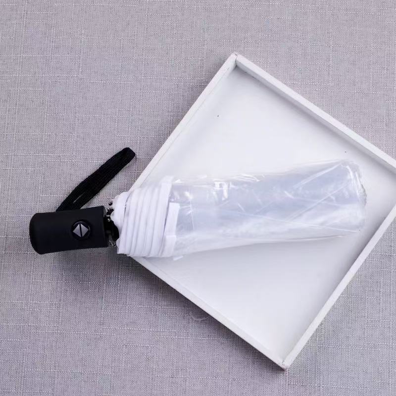 • 자동 투명 검정 우산 흰색 손잡이
