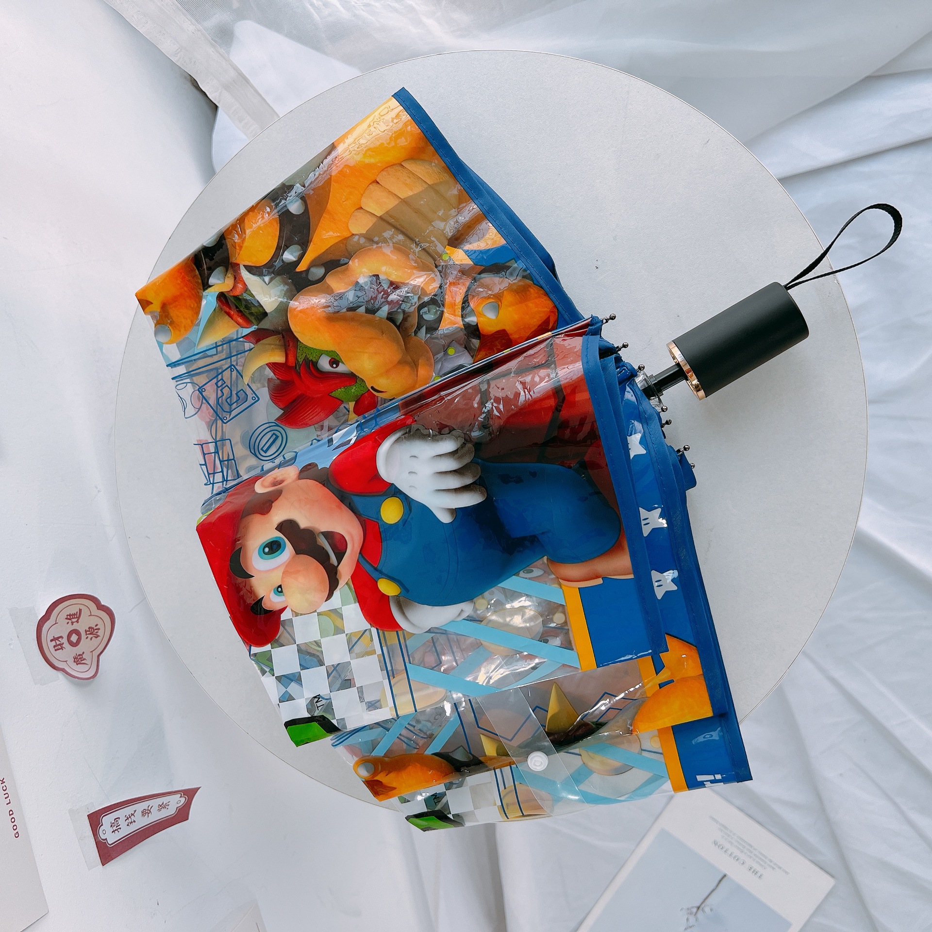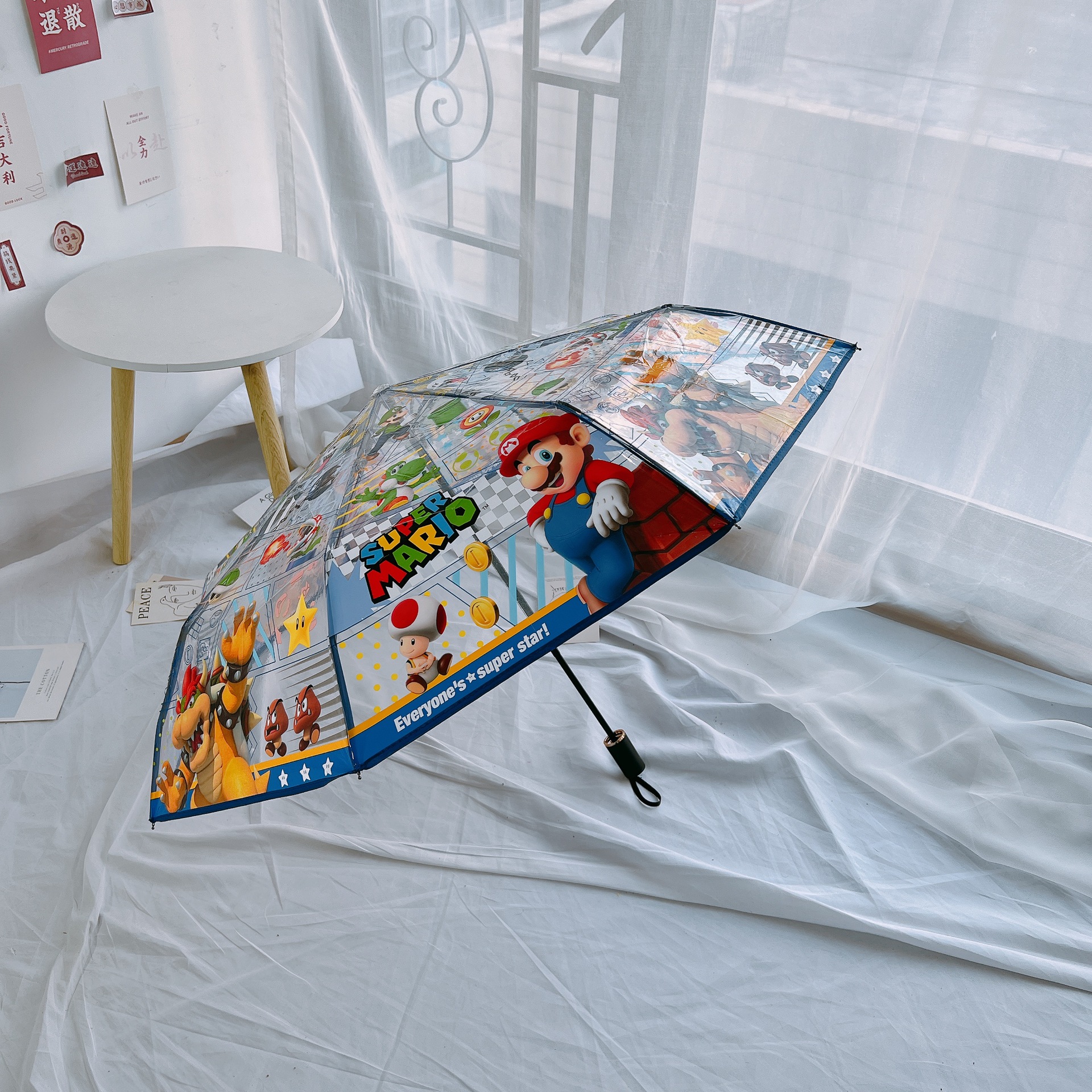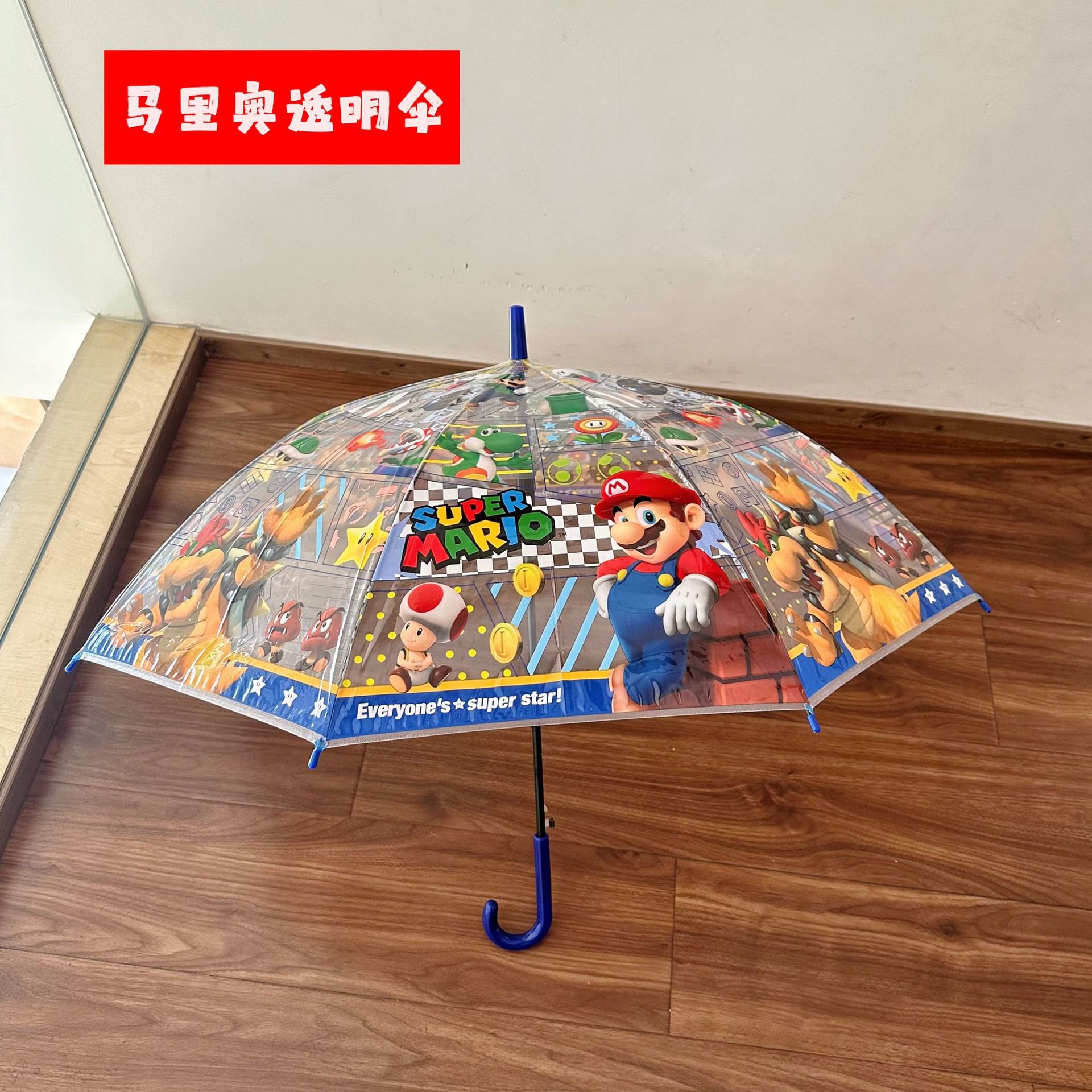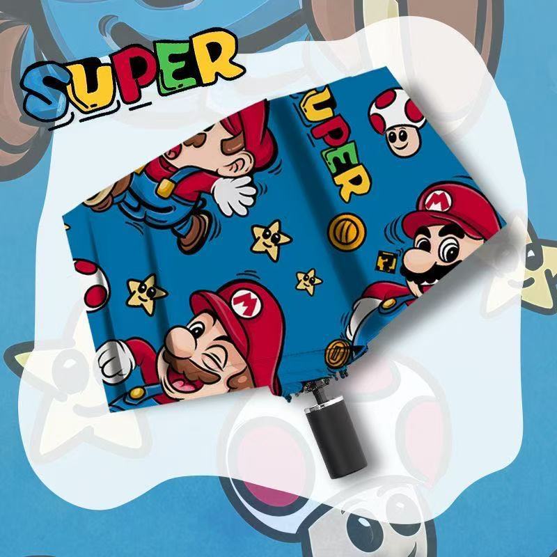 투명 우산 3 배 우산 자동 스트레이트 핸들 우산 여성 귀여운 접는 학생 어린이 성인 슈퍼 마리오스토어 가기