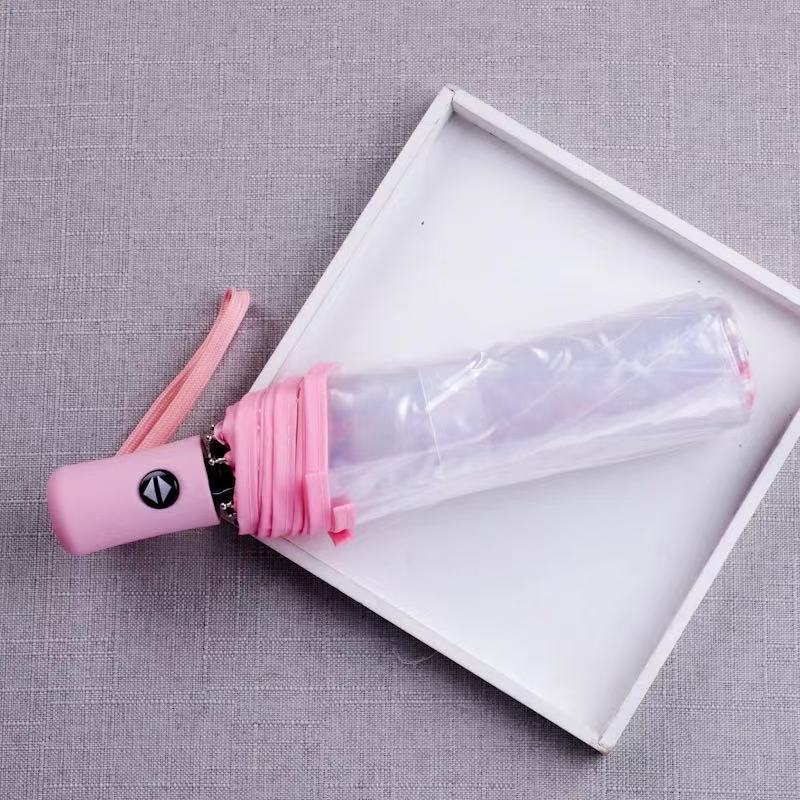 • 자동 투명 파우더 우산 핑크 손잡이