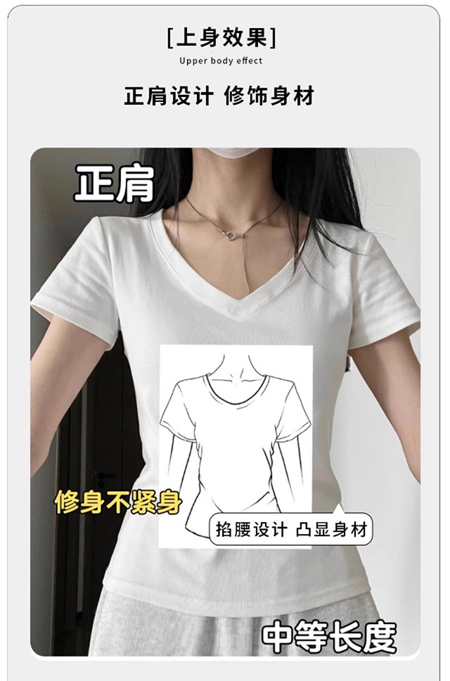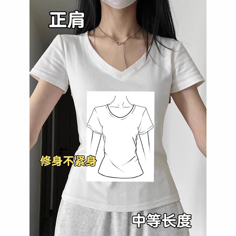 화이트 V 넥 반팔 티셔츠 여성 2025 신작 한국식 슬림핏 내베이스 셔츠 스프링 웨어 숄더 셔츠스토어 가기