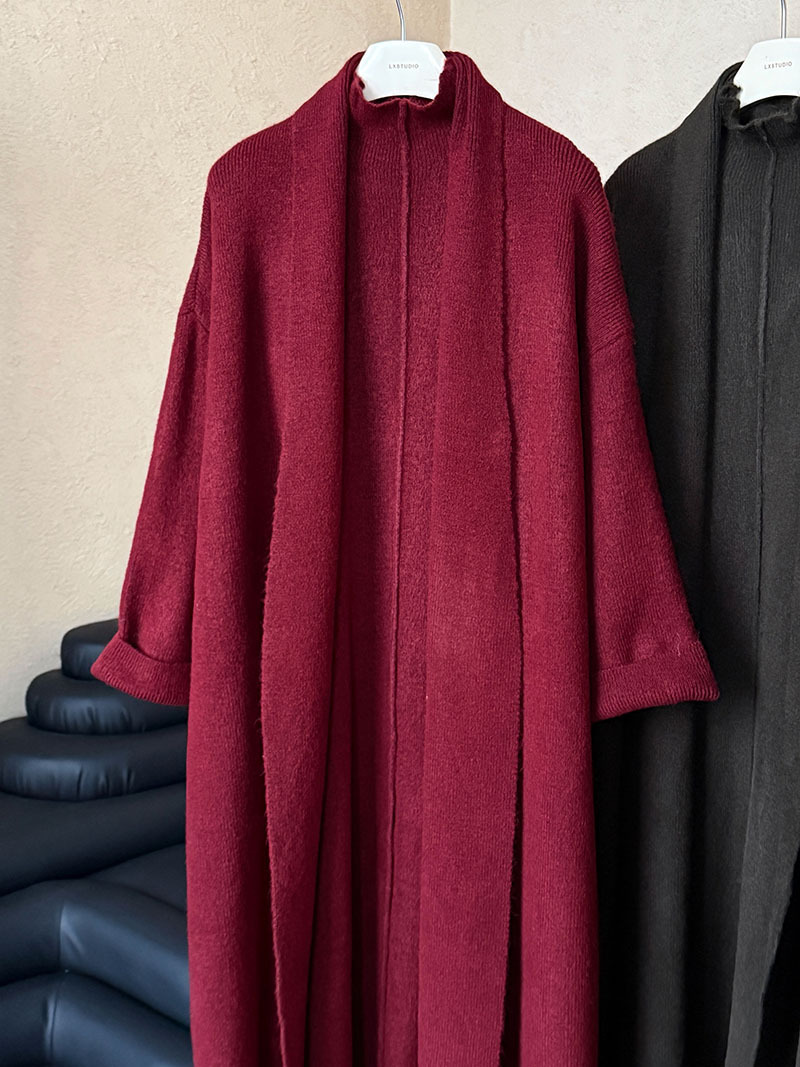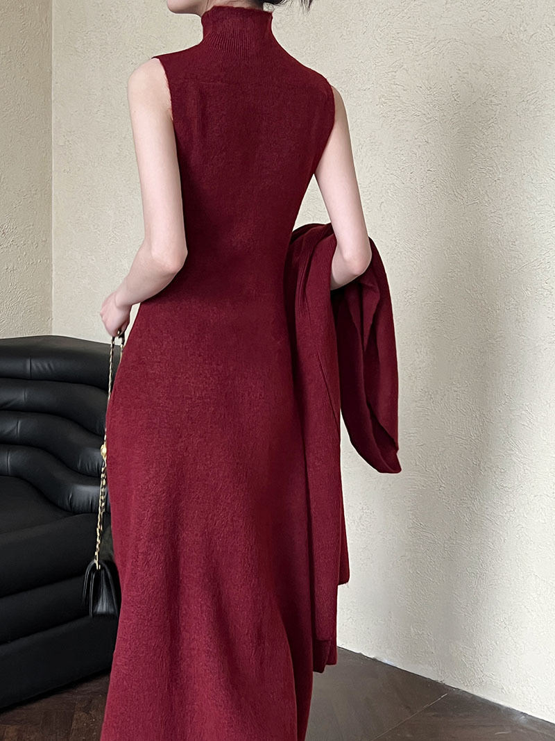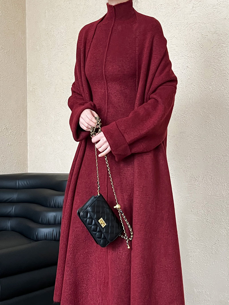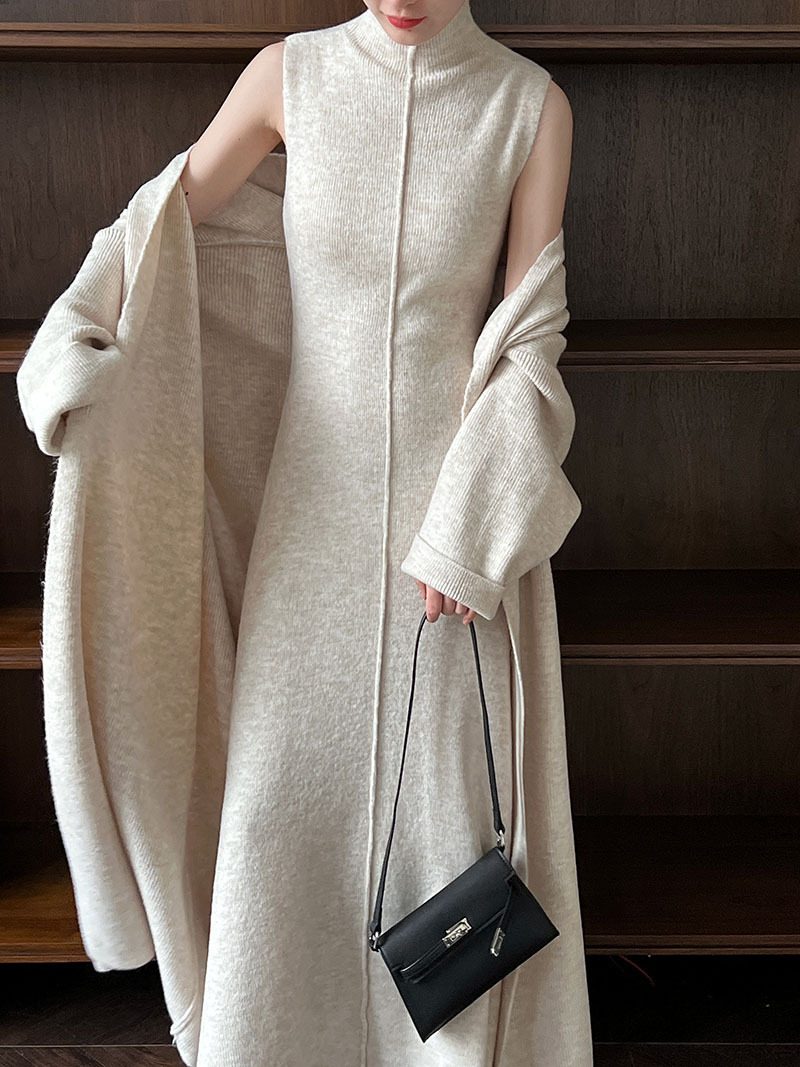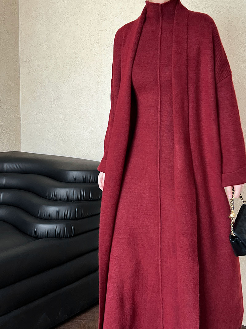 게으른 스타일 긴 니트 카디건 스웨터 세트 여성의 가을과 겨울 새로운 패션 우아한 높은 목 원피스 투피스 세트
