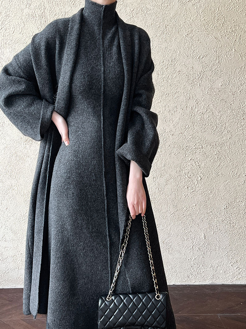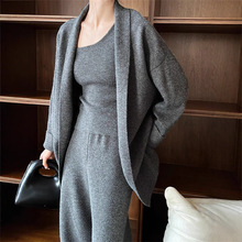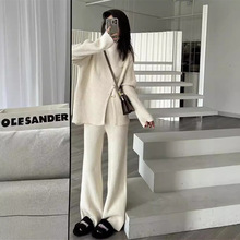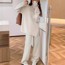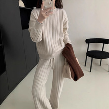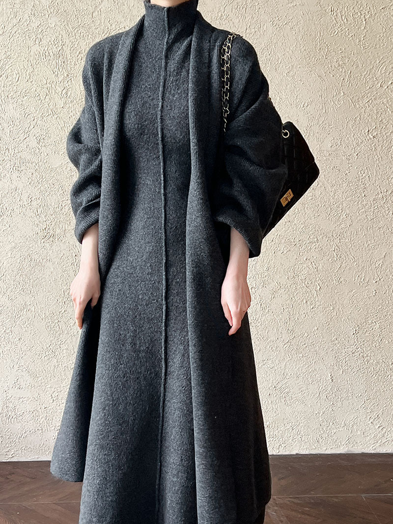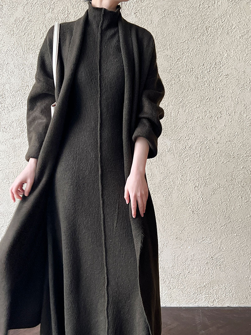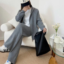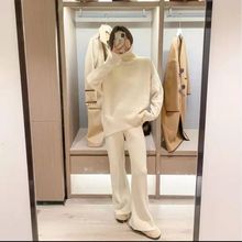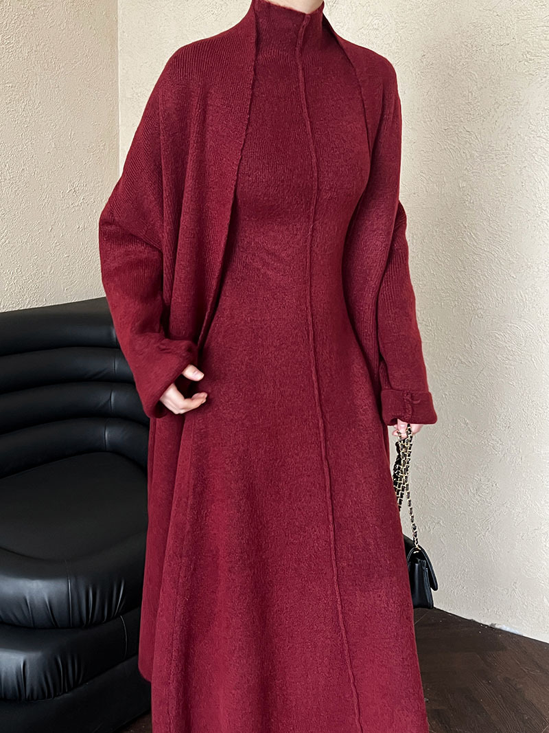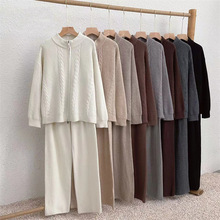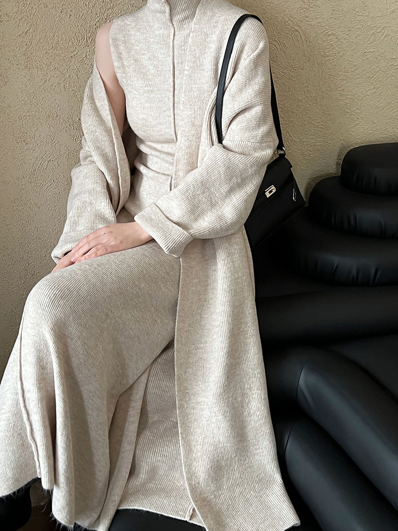 게으른 스타일 긴 니트 카디건 스웨터 세트 여성의 가을과 겨울 새로운 패션 우아한 높은 목 원피스 투피스 세트스토어 가기