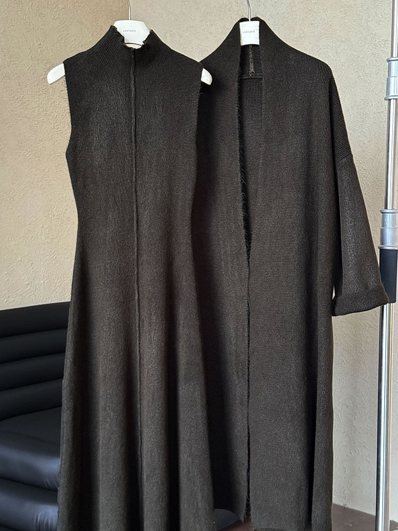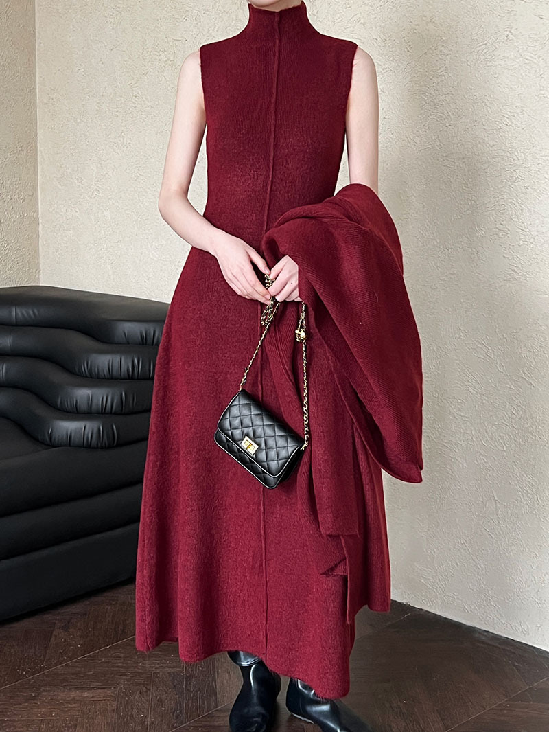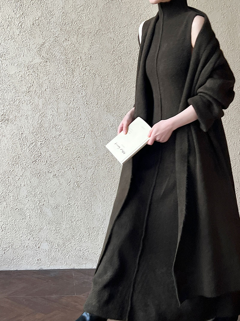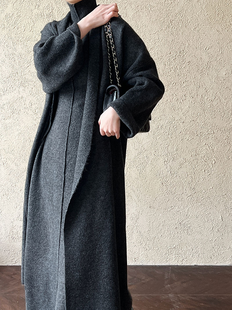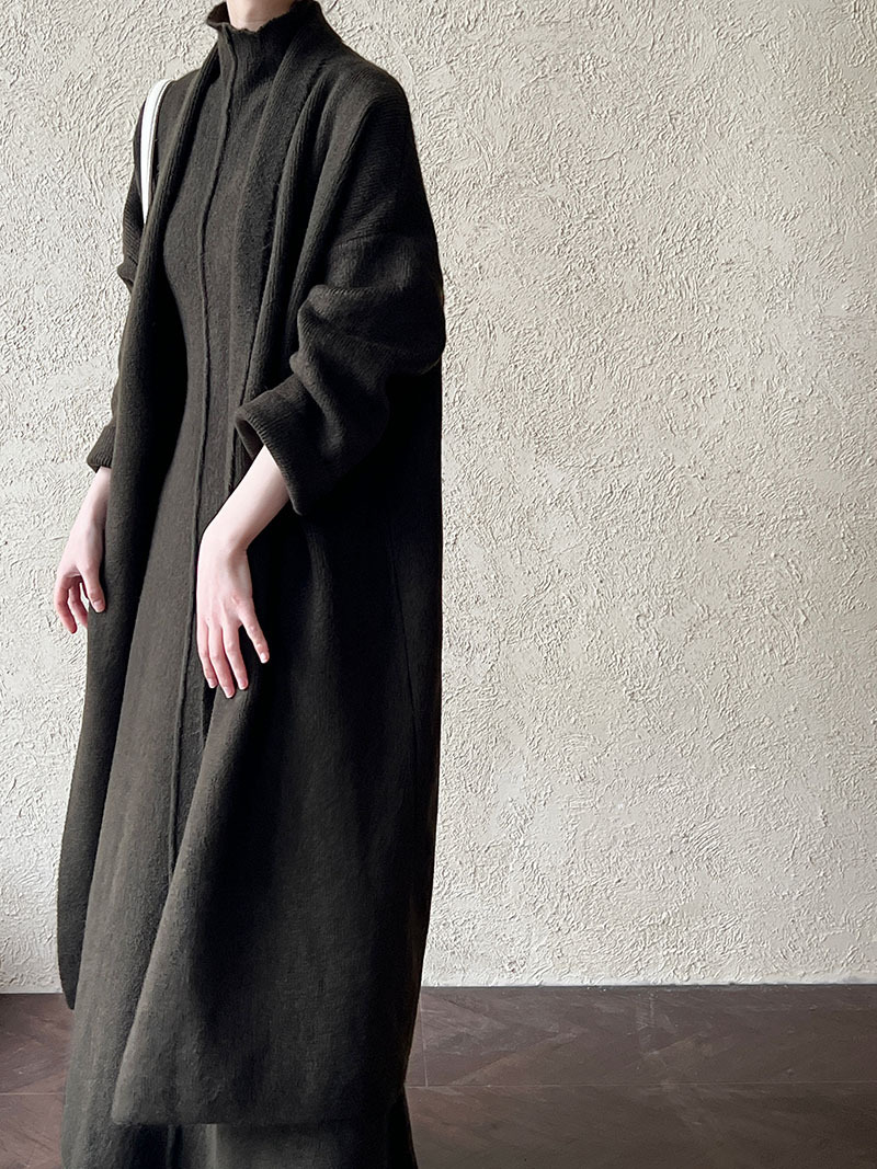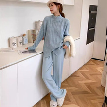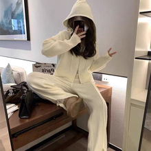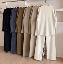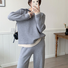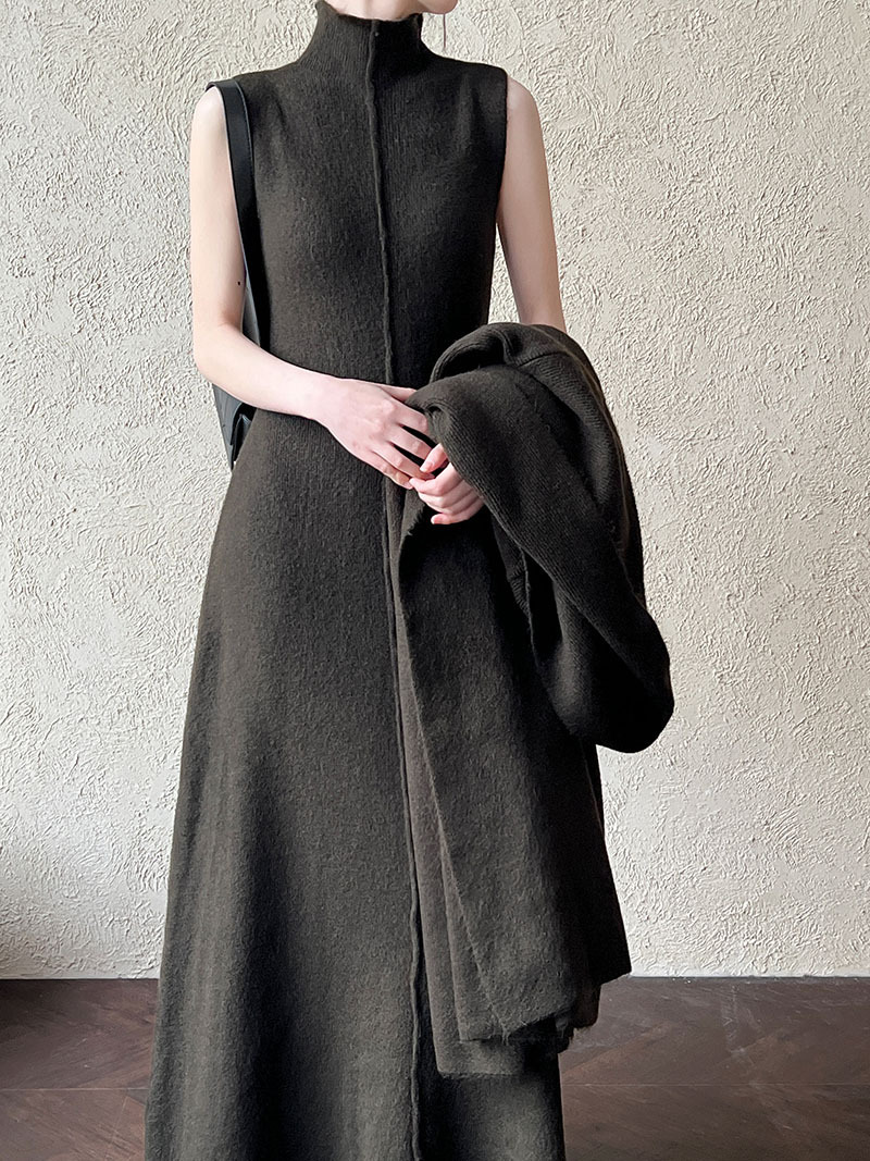 게으른 스타일 긴 니트 카디건 스웨터 세트 여성의 가을과 겨울 새로운 패션 우아한 높은 목 원피스 투피스 세트스토어 가기