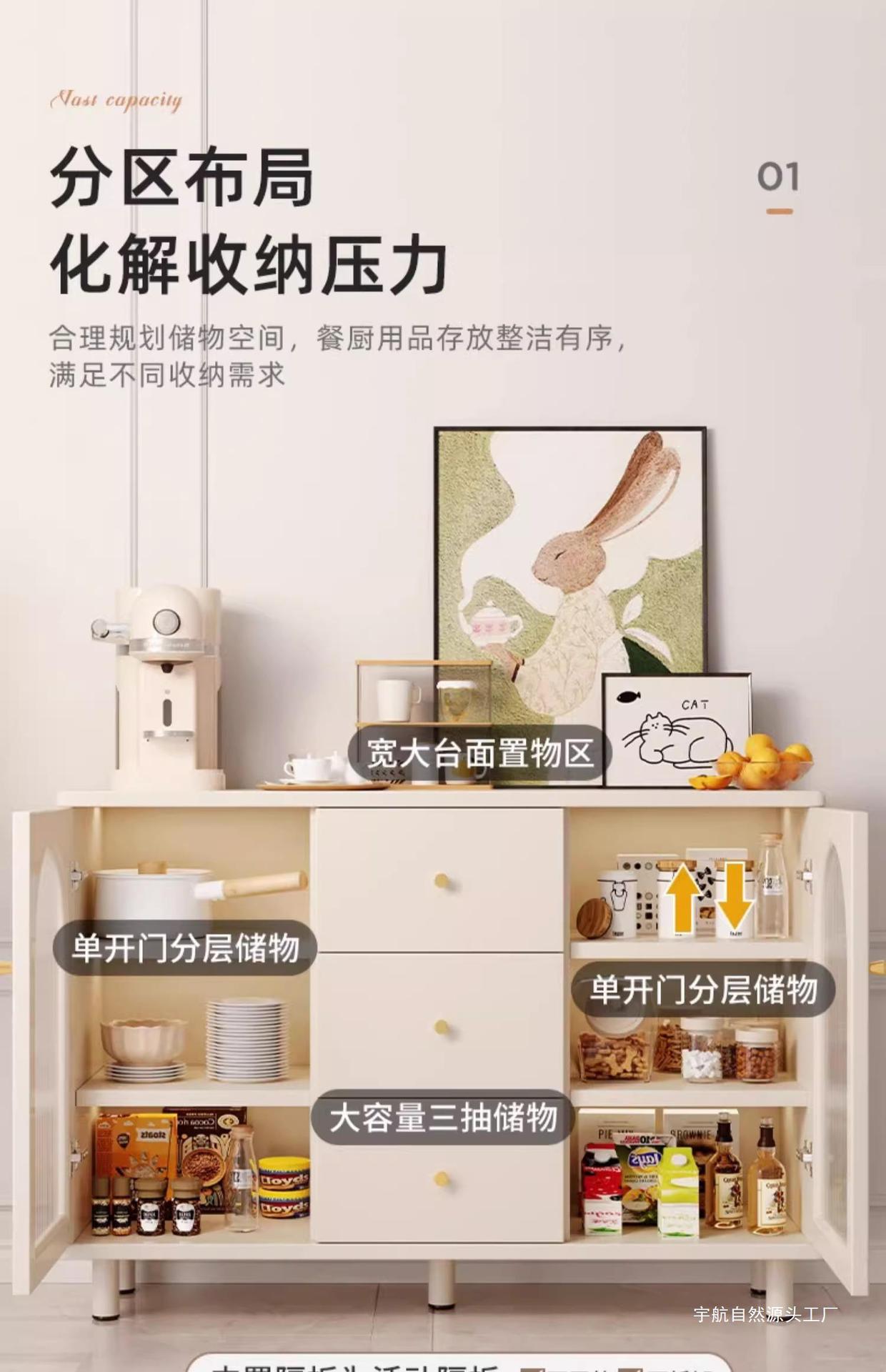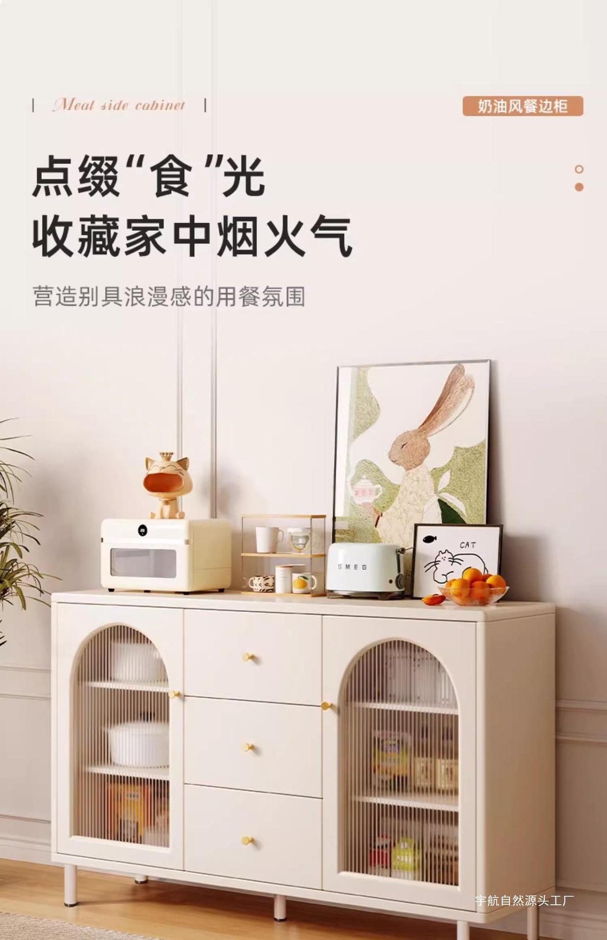 크림 스타일 찬장 수납 캐비닛 벽걸이형 일체형 차 수납 캐비닛 주방 캐비닛 가정용 찬장 거실 수납 캐비닛